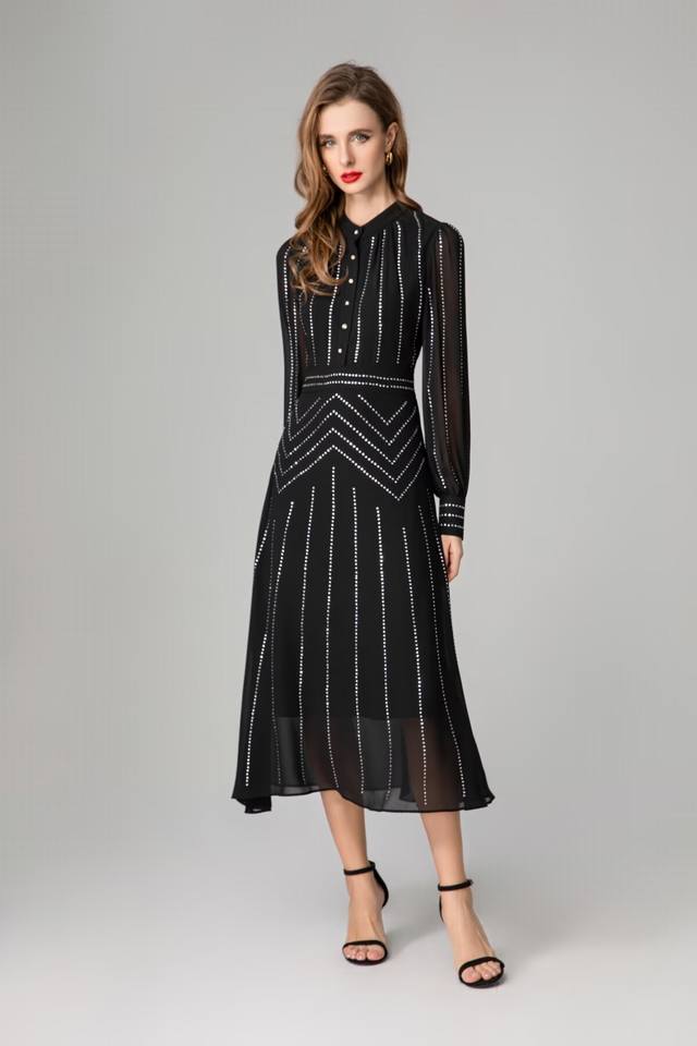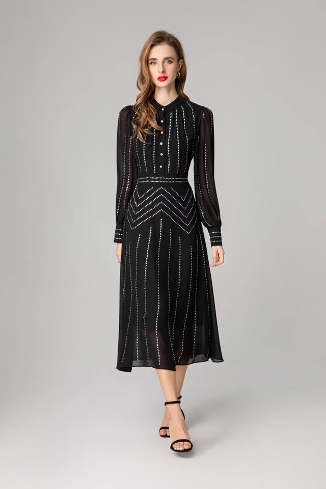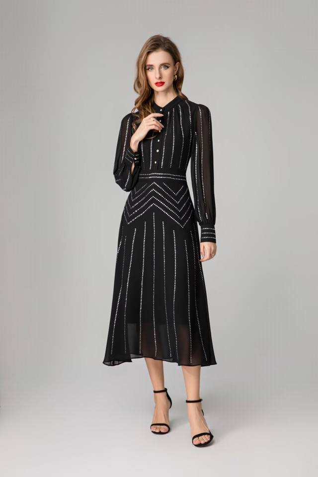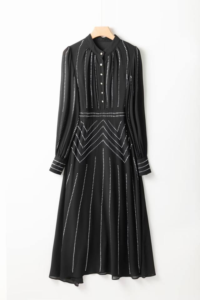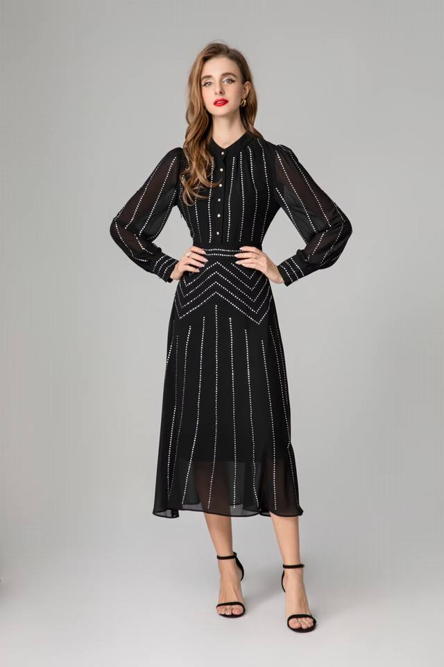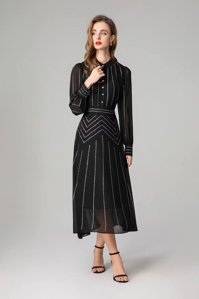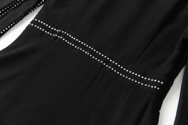 / Hot diamond long-sleeved dress Size: Smlxlxxl Color: Black Material: Fiber Size
