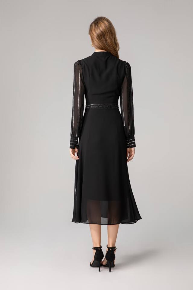 Hot diamond long-sleeved dress Size: Smlxlxxl Color: Black Material: Fiber Size