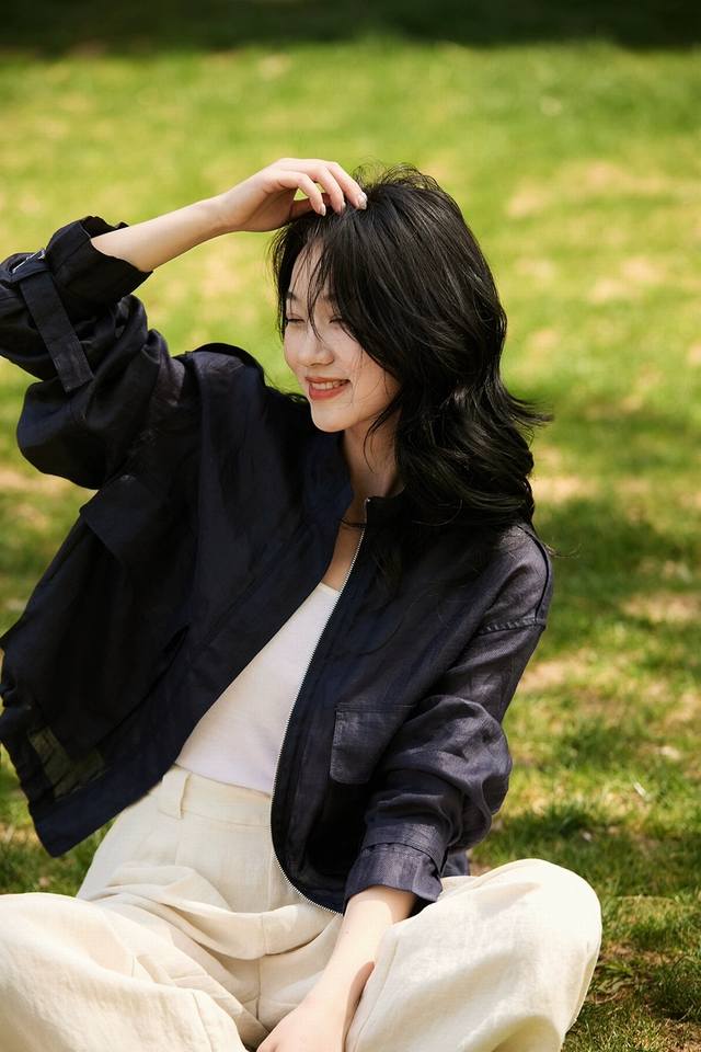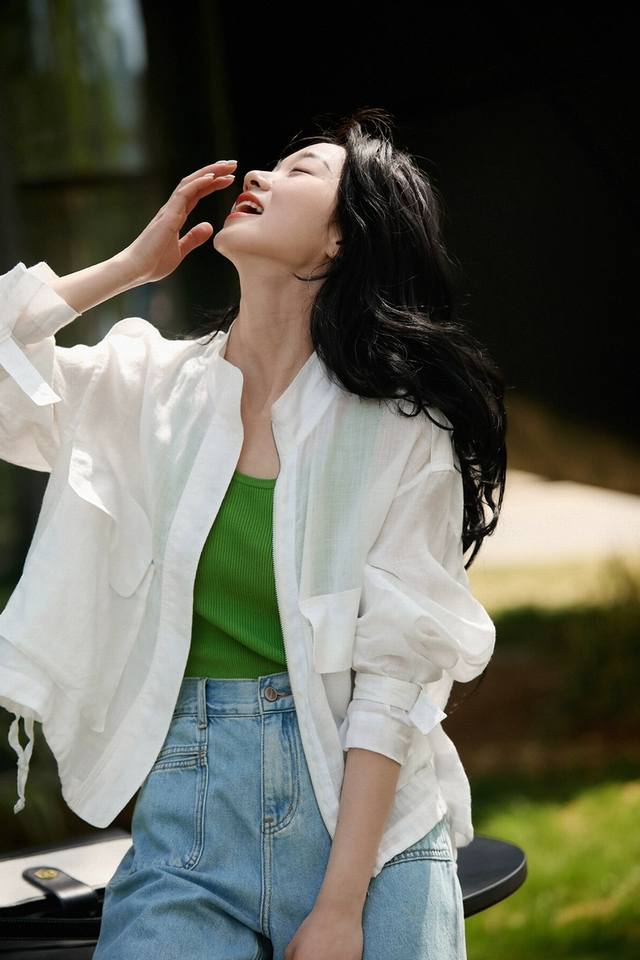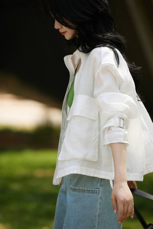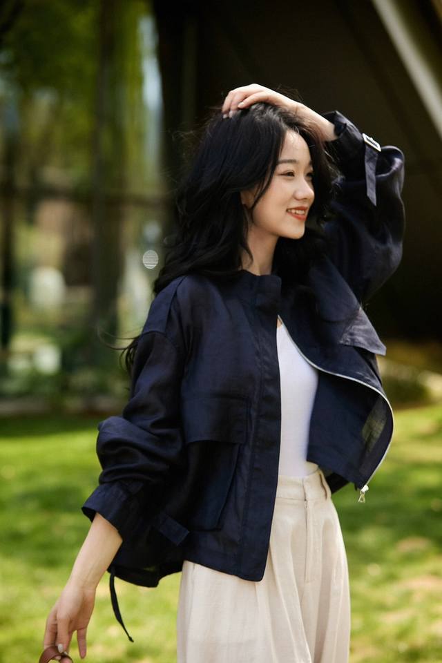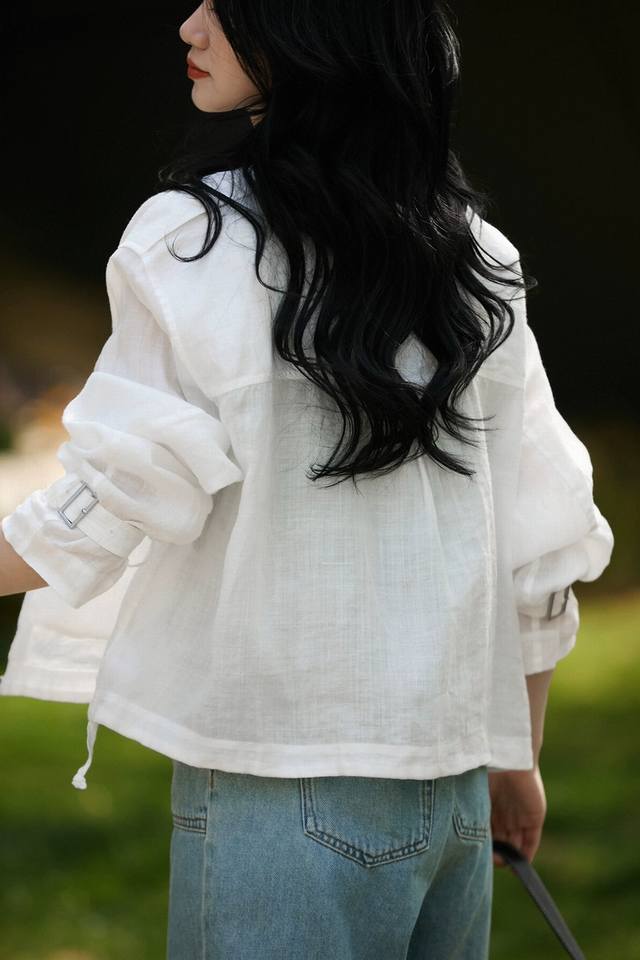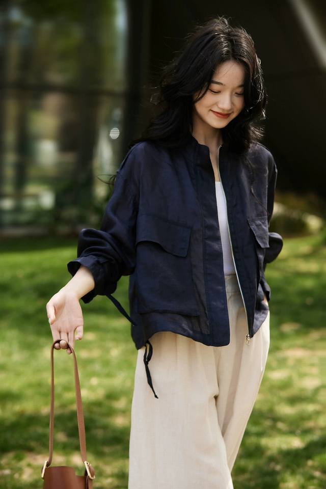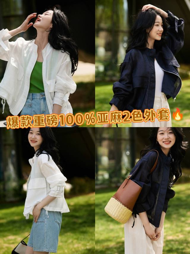 Hot item! Heavyweight 100% linen 2-color jacket! European commuter design with Audrey Hepburn style, breathable stand-up collar, versatile jacket, including restocking! White, navy blue, Smlxl