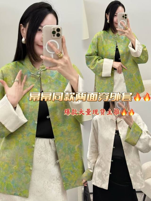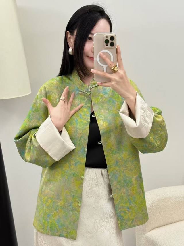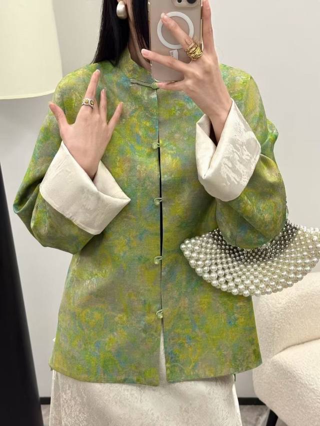 Hot item, in stock! Featured: the same pattern as the oil painting poet Mi Mi! A vibrant, double-sided, exquisite jacquard long-sleeved jacket. The Chinese button design is refined and elegant, with every detail showcasing the unique charm of oriental aesthetics. The short silhouette is neat and capable, with folded sleeves for a layered feel. Gentle yet playful. Smlxl