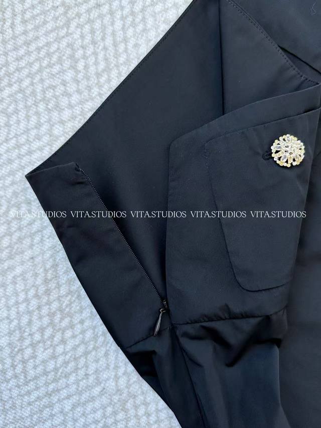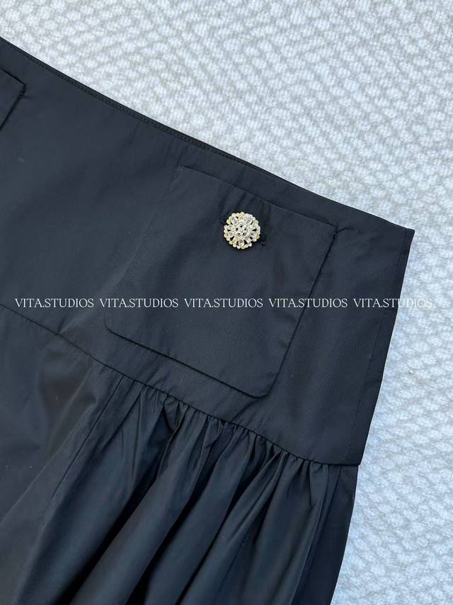 Hot Item In Stock DDD High-Waisted Pocket Skirt Ddd Made of silk-polyester taffeta, a blend of silk and polyester Ddd Silk gives the fabric a smooth, lustrous feel, enhancing its luxurious texture and delicate touch Ddd Polyester enhances the fabric's crispness and wrinkle resistance, preventing the taffeta's three-dimensional silhouette from deforming Ddd Front patch pockets combine decoration and practicality, with smooth edges at the pocket openings Ddd The entire piece is finished with overlock stitching, ensuring a burr-free lining Ddd It fits snugly against the legs for a comfortable and skin-friendly feel Ddd The gathered design on the left side makes the skirt more dynamic and voluminous, with smooth and natural lines at the seams Ddd It flatters the waist and hip proportions, giving the skirt a layered look and a more elegant curve when walking Ddd The buttons are custom-made from a mold, hand-stitched for reinforcement, and their texture echoes the fabric of the skirt Ddd Decorative chain adds a touch of detail Ddd The concealed zipper design at the back ensures smooth operation without compromising the overall aesthetics of the skirt Ddd Color: Black (Ddd) Sizes: S, M, L, Ddd, C, Bq, DDD