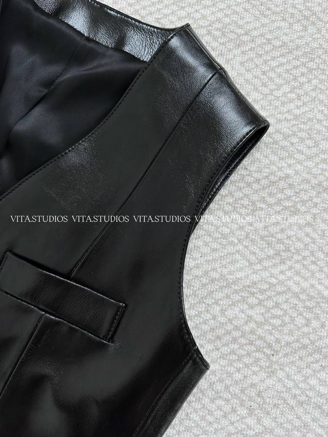 Hot Item In Stock DDD Leather Vest/Tank Jacket Ddd High-quality 100% sheepskin leather, soft, smooth, with fine and even pores, highly stretchable, more durable and long-lasting. V-neck design, slim fit, streamlined waist, simple and stylish, exquisite stitching, high-end craftsmanship, four pockets, angled hem, high-grade silk lining, comfortable and skin-friendly Ddd A dashing and stylish look, adding a touch of coolness and chic, easily creating a cool and unrestrained beauty. DDD Color: Black Ddd Size: SML Ddd C*Bx DDD