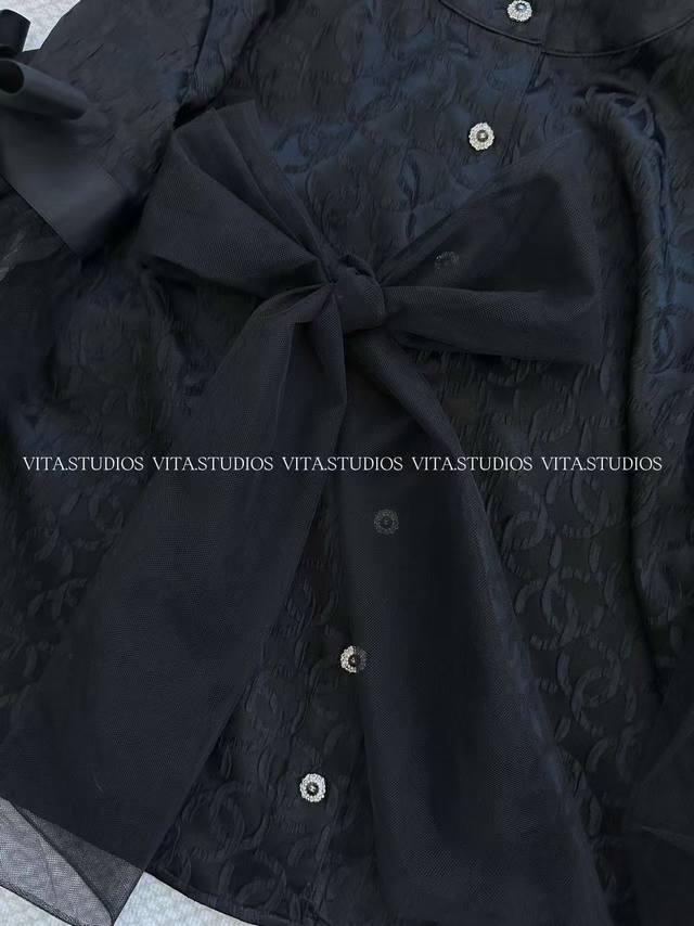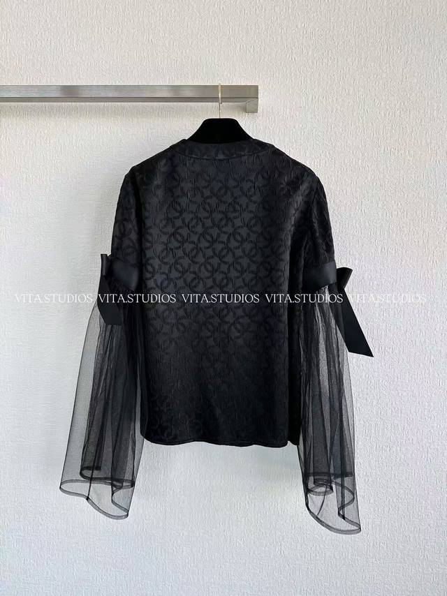 Hot Item In Stock DDD Mesh-Patterned Shirt Ddd The main body is made of 19 momme pure silk, with a silky and delicate touch Ddd It has a high-end luster, injecting luxury into the jacket Ddd The jacquard texture on the fabric is exquisite, high-end, and visually rich Ddd The sleeves are made of mesh Ddd The lightness and transparency of the mesh contrasts sharply with the heavy texture of the silk Ddd Creating visual tension, making it move and flow with movement Ddd The mesh bow at the neckline is handmade and has a strong three-dimensional effect Ddd All seams are hemmed and topstitched Ddd The cuffs and hem are rolled up 2 times, with neat and exquisite edges Ddd The front center button is handmade, and the button details echo the overall style Ddd Color: Black Ddd Size: SML Ddd C*Wt Ddd