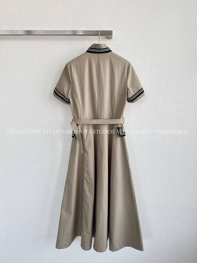 Hot Item In Stock DDD Pure Cotton Short-Sleeve Open-Plate Stand Collar Dress Ddd Made of 100% cotton fabric, combining excellent breathability and a crisp feel Ddd Comfortable and skin-friendly for everyday wear, while perfectly showcasing the classic dress silhouette Ddd The entire dress features a seamless, smooth edge finish, demonstrating meticulous craftsmanship Ddd The edges are neatly finished Ddd 15 custom-made handmade buttons are placed at the front center, each button carefully crafted Ddd Infusing the dress with a retro and elegant feel Ddd Custom-made woven ribbon appliqu