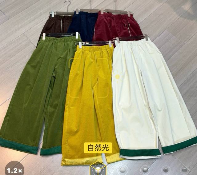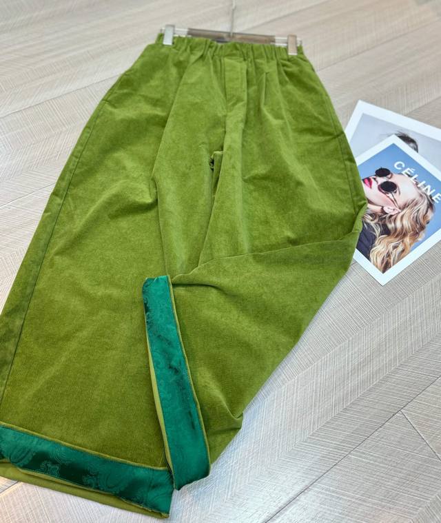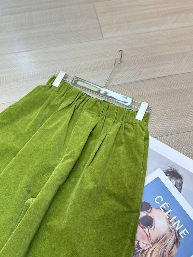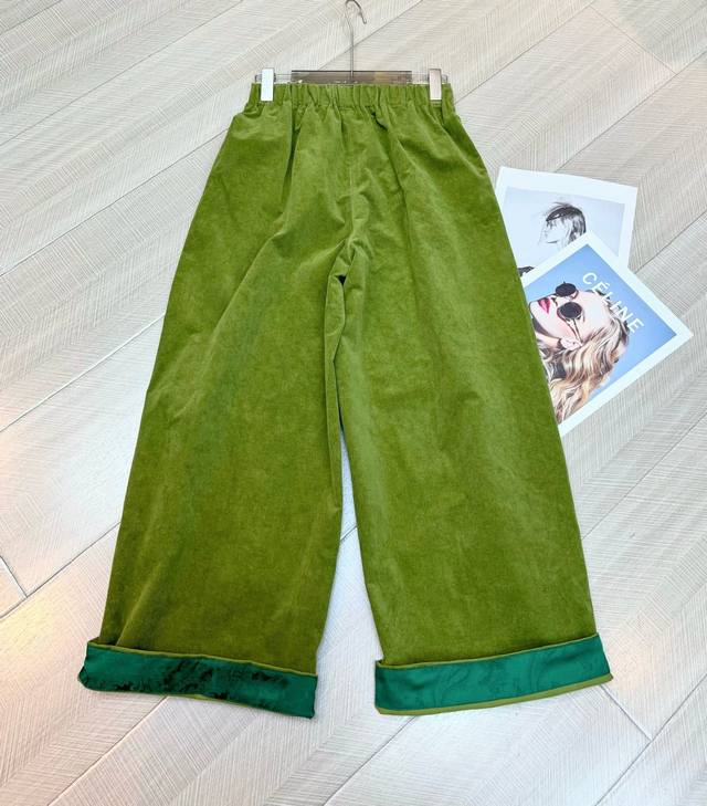 Light luxury corduroy elastic waist satin curled balloon six-color wide-leg pants