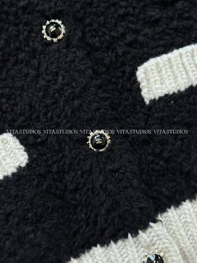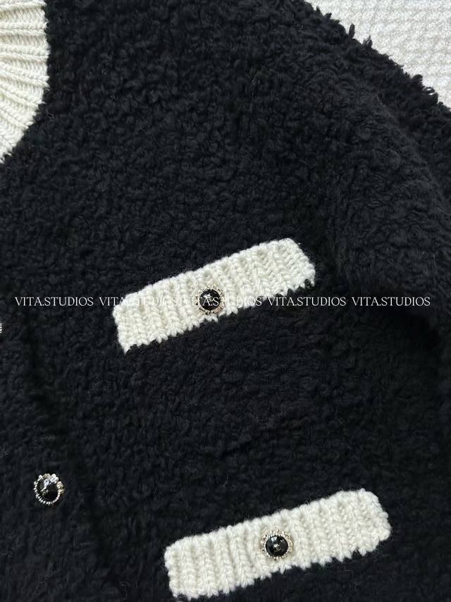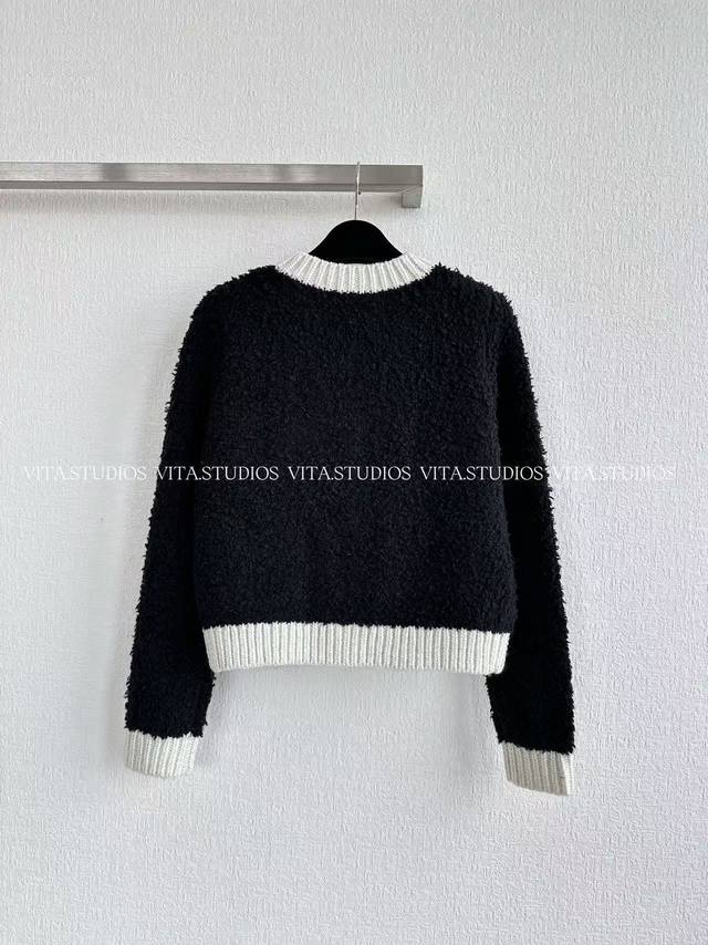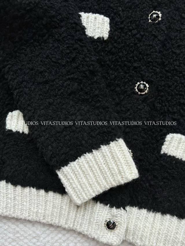 Hot Item Pre-order DDD Contrasting Edge Knit Cardigan DDD Made with a blend of wool half-pile and Icelandic wool fabric DDD The delicate softness of the half-pile gives the garment a skin-friendly feel DDD Like a cloud enveloping the skin DDD The three-dimensional fluffiness of the Icelandic wool brings a strong visual sense of layering and warmth DDD The black and white contrasting design of the garment is made with a hand-woven inlay technique DDD The stitches are straight and precisely aligned with the wool texture DDD It creates a strong visual impact against the backdrop of the fluffy wool fabric DDD The short silhouette is three-dimensionally tailored to easily optimize body proportions DDD The blend of half-pile and Icelandic wool creates a rich textural layering DDD Colors: Black White DDD Sizes: SM L DDD C*Zx DDD