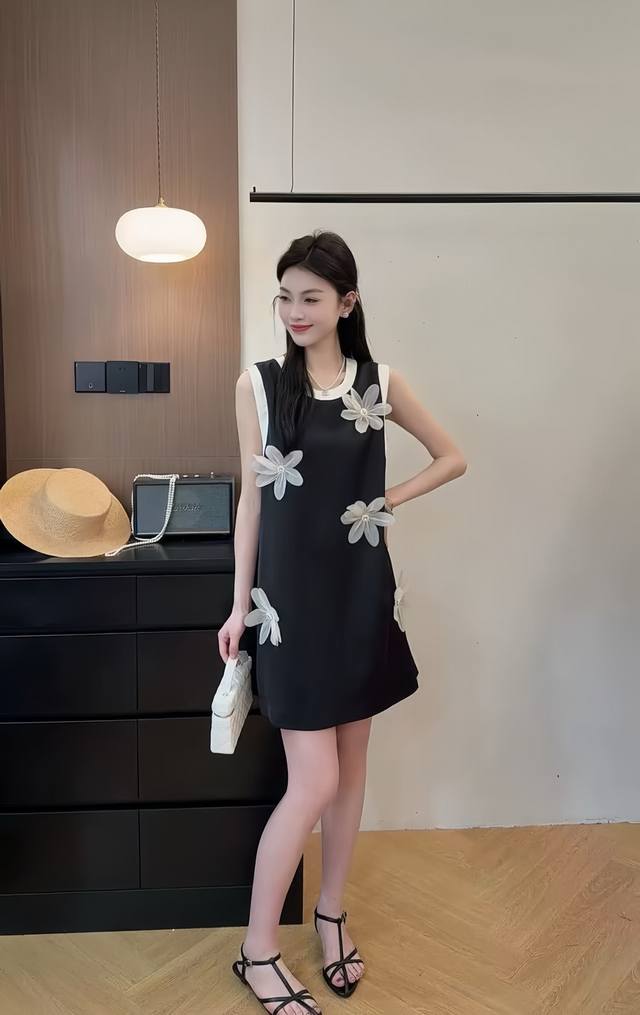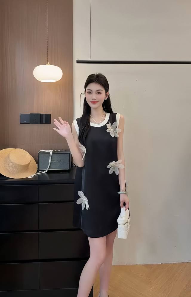 Hot item recommendation French high-end celebrity temperament Hepburn style slim three-dimensional flower dress fashionable and elegant, tall and slim, elegant temperament goddess fan Smlxl