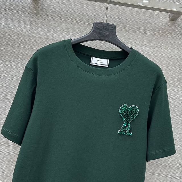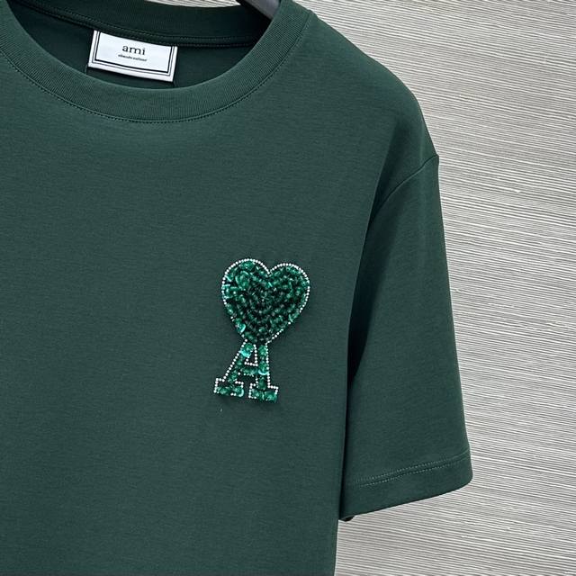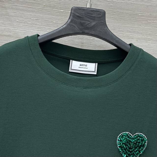 Hot Item Recommendation! Original Quality, a Must-Have for Quality Controls! Ami Capsule Collection Versatile Item, Early Spring 2026 New Arrival, Summer Limited Edition Refreshing Colors, Rhinestone-Encrusted Heart Drop-Shoulder Crew Neck T-Shirt, a Fashionista's Must-Have for All Styles! Couple Style, Loose Fit, Heavy-Duty Heart Logo and Rhinestone Craftsmanship, Original Custom Pure Cotton Fabric, Yb Weight, Superb Texture, Looks Great on! Classic Item, Stylish and High-End! Classic Fit, Flattering on All Body Types! Highly Recommended for Personal Use. Two Colors, Sizes S, M, and L, In Stock Now! DDD
