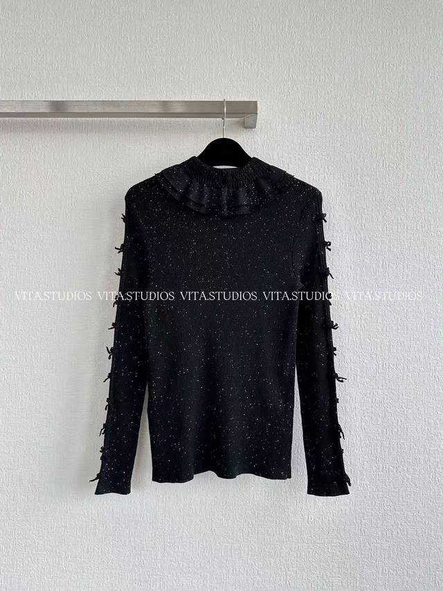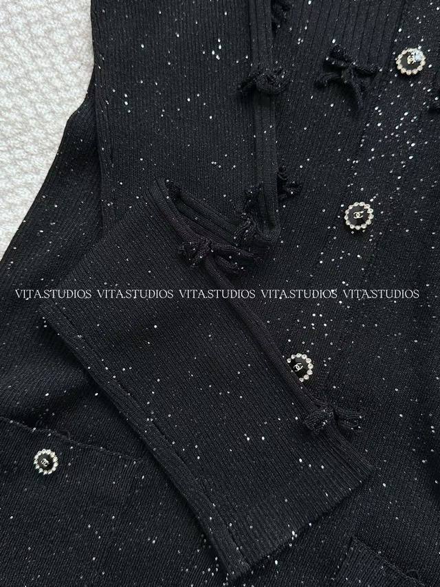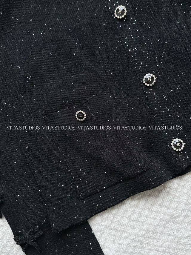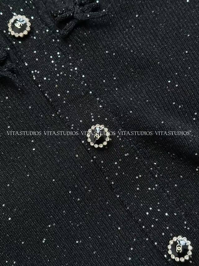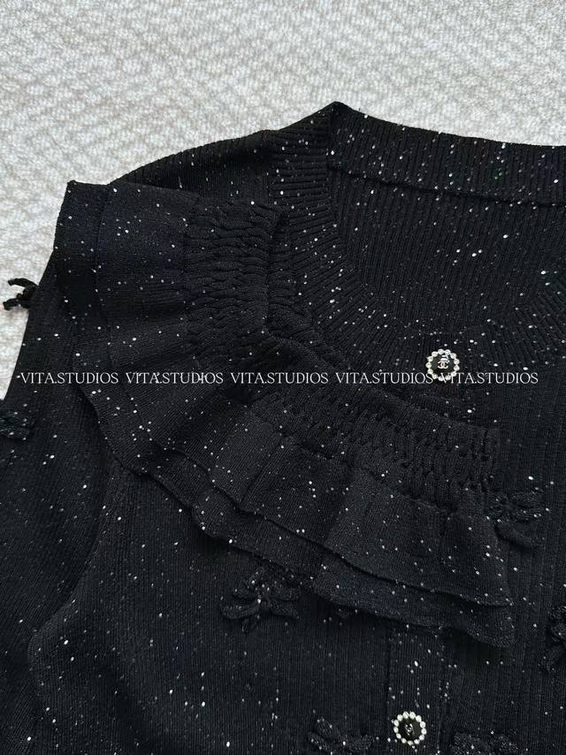 Hot Item Reorder Pre-order DDD Bow Knit Cardigan Ddd Made with 6 ultra-fine viscose filaments wrapped with three strands of super-fine metallic thread Ddd Paired with 4.5cm finest sequins Ddd Creates a crisp yet skin-friendly sequined yarn Ddd This process is the pinnacle of sequined yarn craftsmanship, the complexity of the process Ddd The yarn sparkles brilliantly under light Ddd Three-dimensional bow embellishments on the body and sleeves Ddd Rich and exquisite layers Ddd Slim fit that hugs the body, showing off curves while maintaining comfort Ddd Classic and versatile round neck design, suitable for various styles Ddd The double-layered ruffled collar is detachable Ddd To meet different dressing styles Ddd Brand logo buttons on the placket for maximum luxury Ddd Color: Black Ddd Sizes: SML Ddd C*Zx Ddd