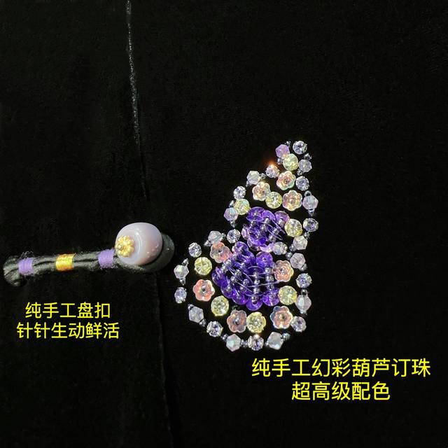 Hot new arrival: 100% mulberry silk reactive dye velvet fabric! Super cute handmade gourd beaded and hand-wound button buckle! The color scheme is sophisticated and elegant, the whole style is exquisite and youthful, and the version is generous and suitable for everyone! Green, purple, yellow, S-Xl, running volume price