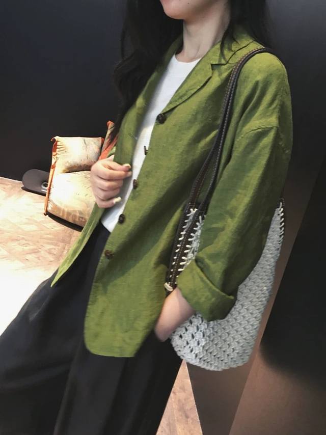 Fermented washed yarn-dyed linen lapel casual suit