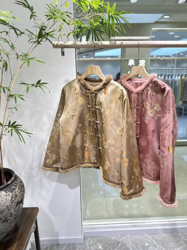 Hot New Arrival DDD New Chinese Style Folded Mink Fur Jacket with Plum Blossom Jacquard Knots DDD Colors: Pink, Champagne DDD Sizes: S, XL DDD