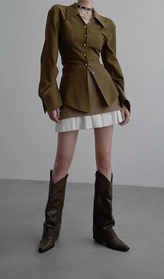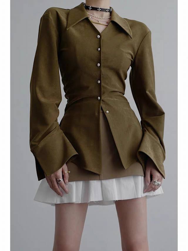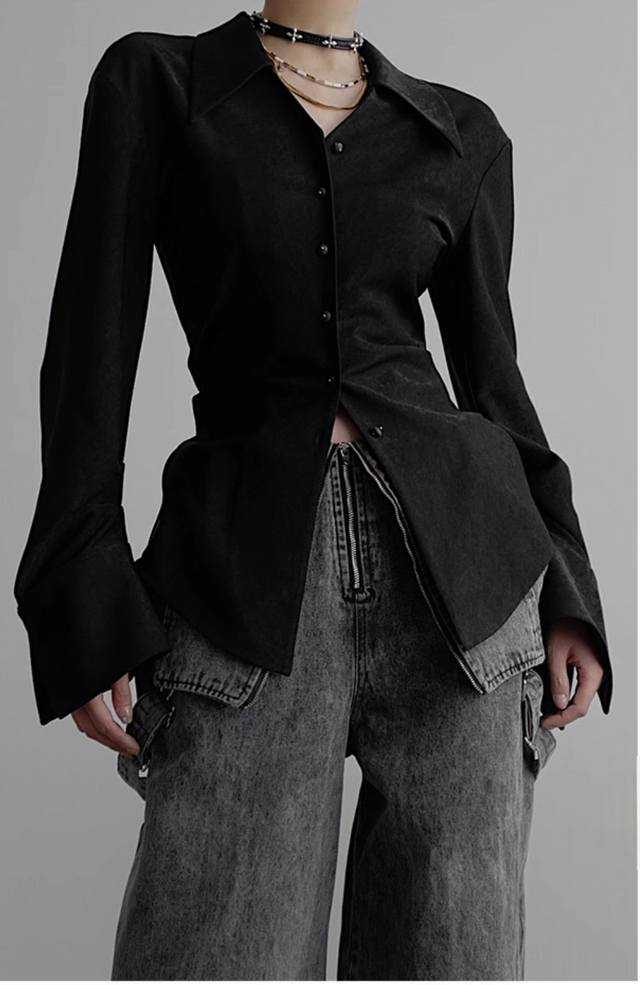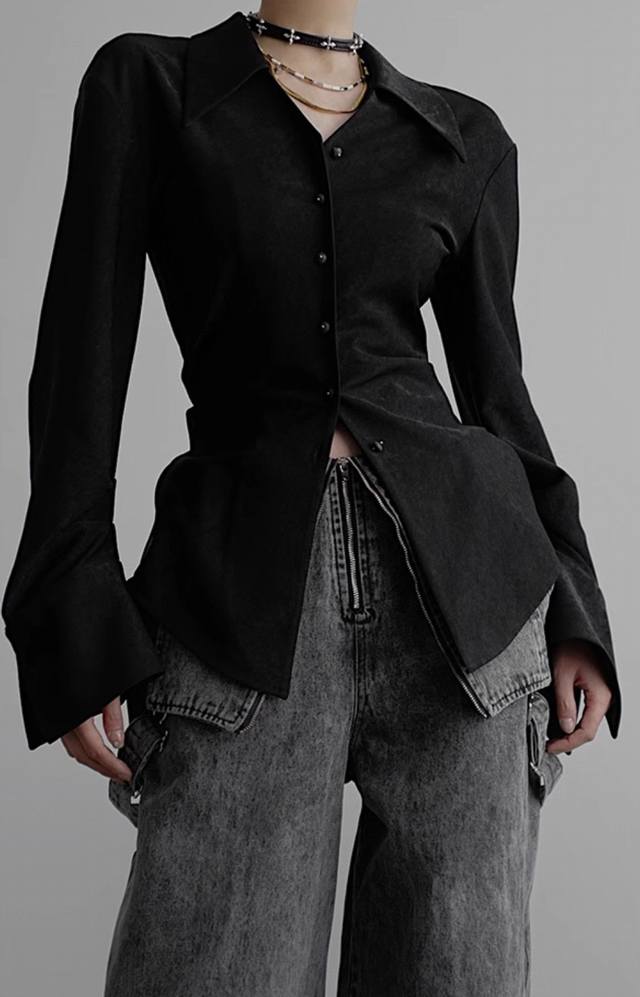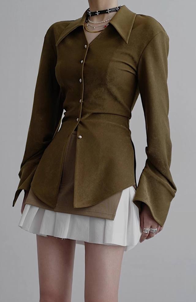 Hot new arrival! Unrivaled Illusionary Temperament Polo Collar Trumpet Sleeves P