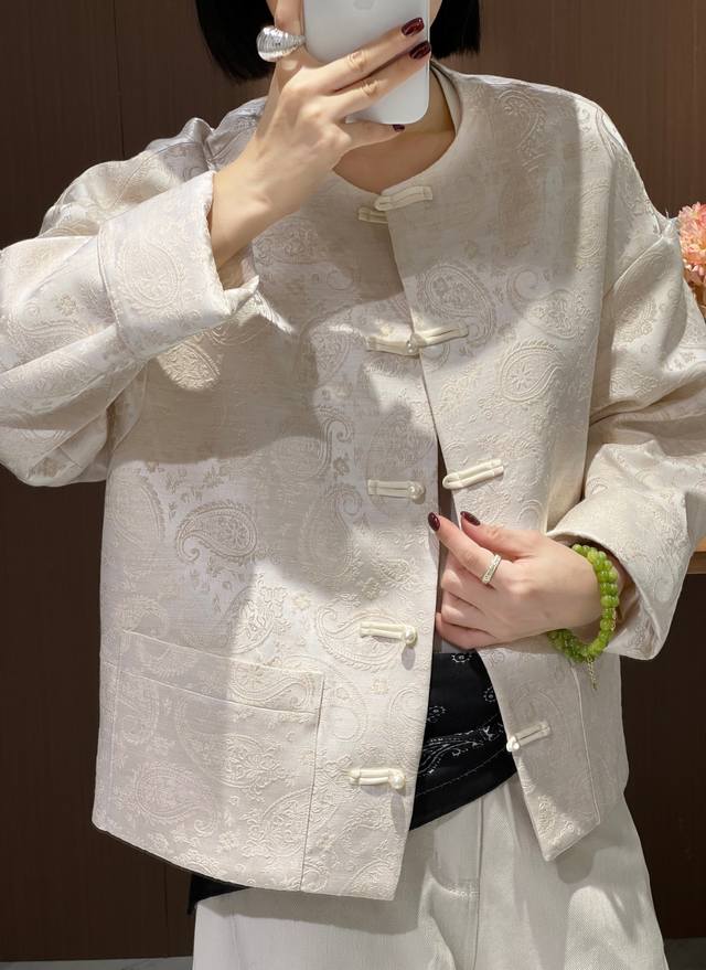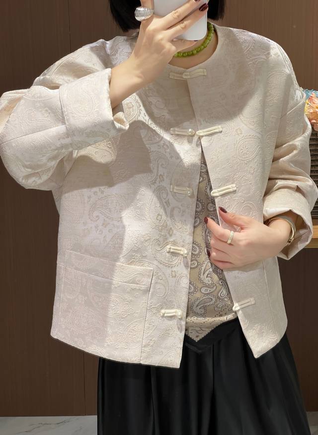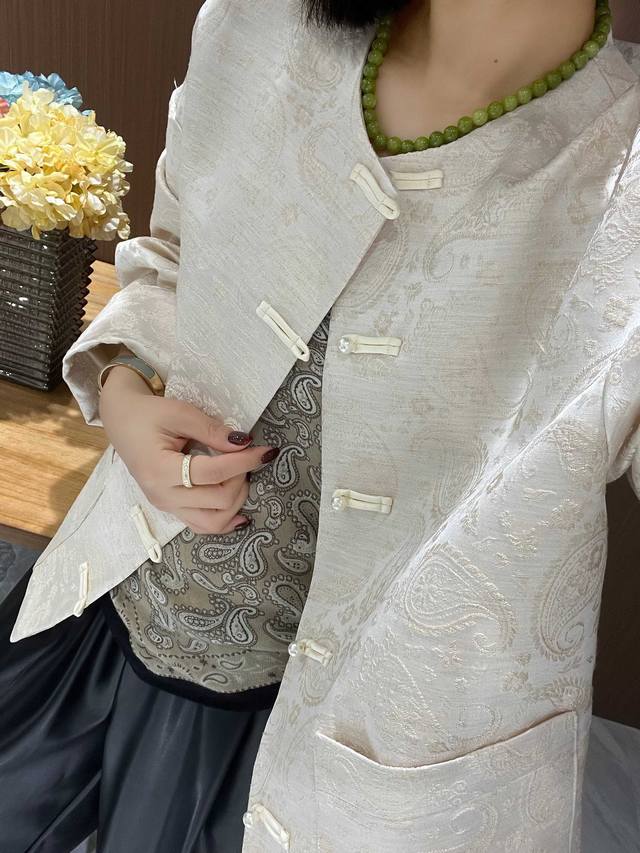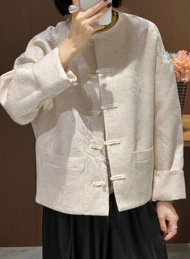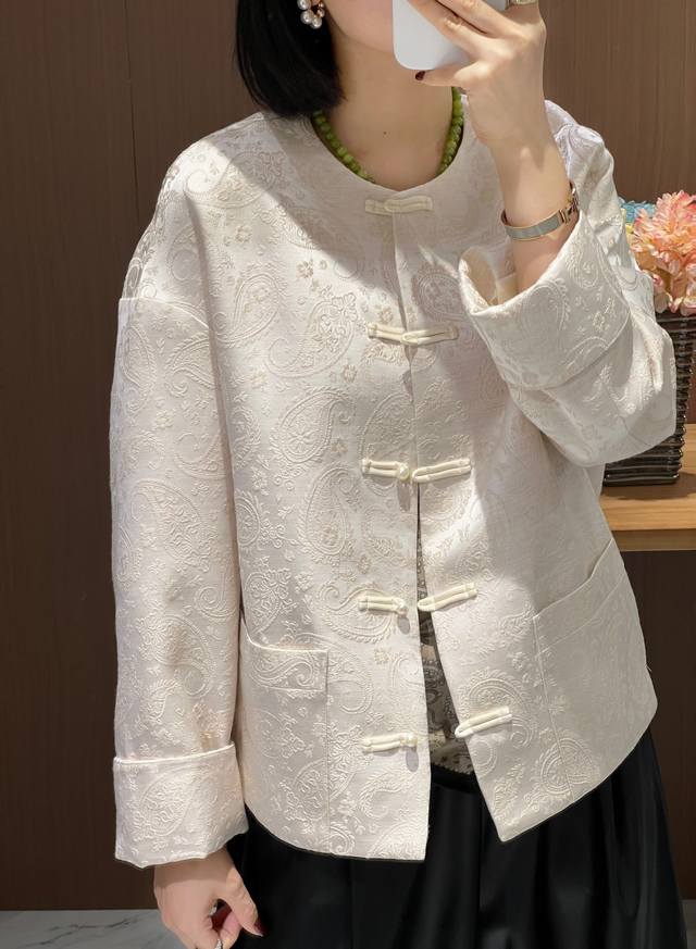 Cashew jacquard silk wool Chinese jacket