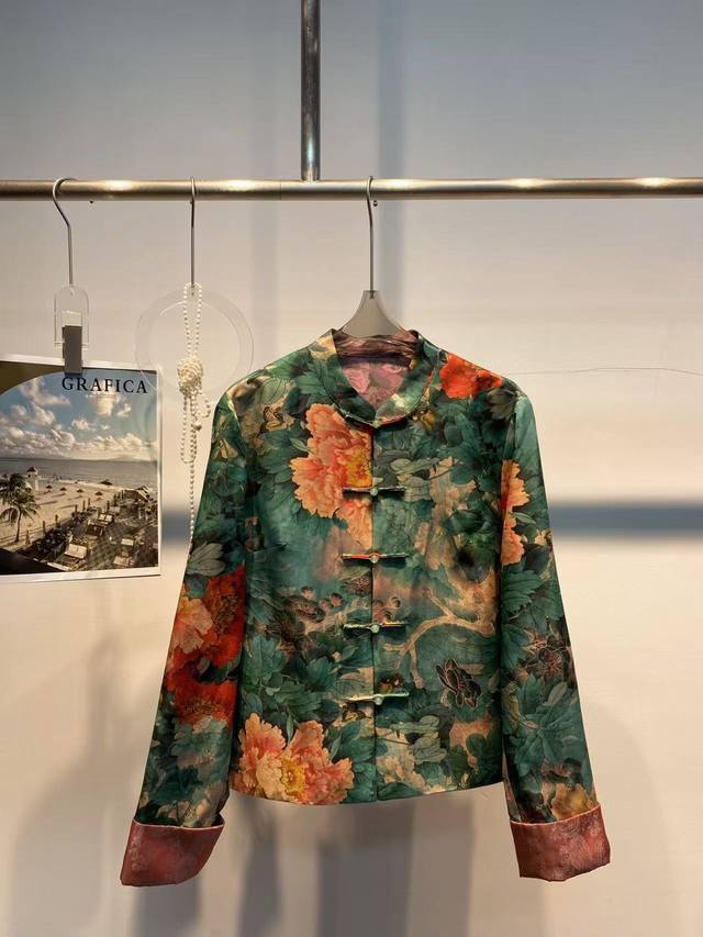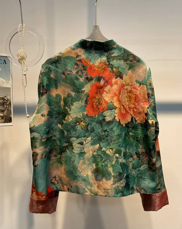 Peony print buttoned jacket