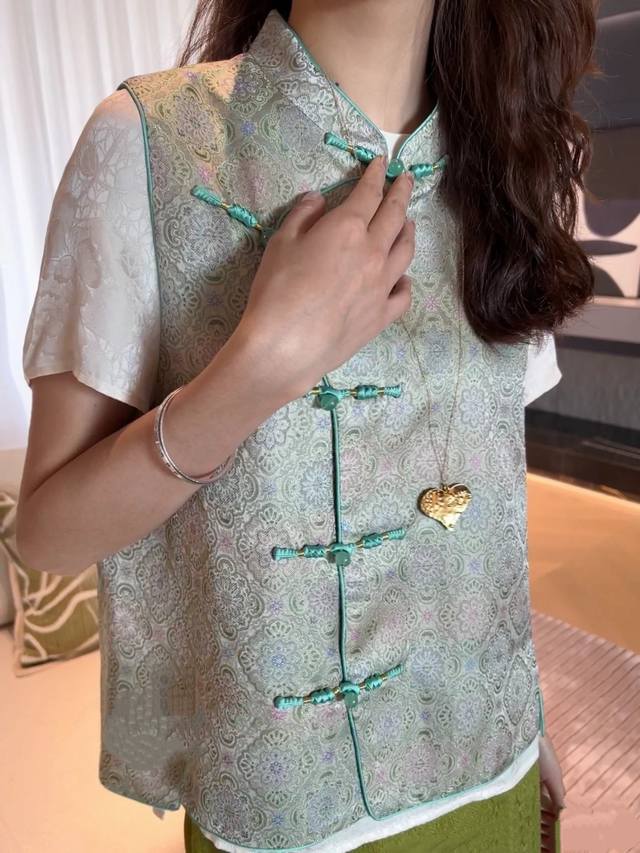 Silk flower radish silk Chinese style pure handmade buttoned vest