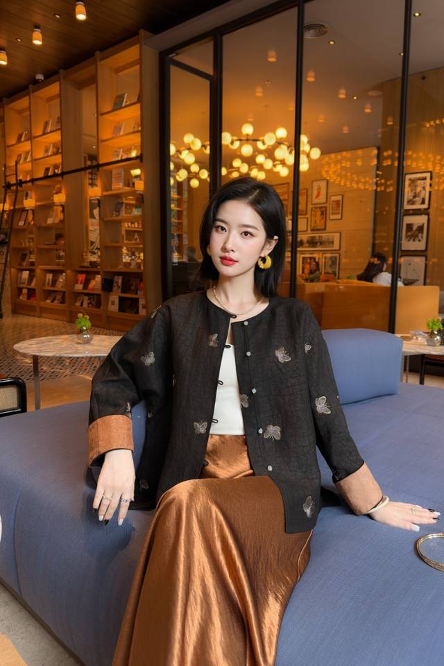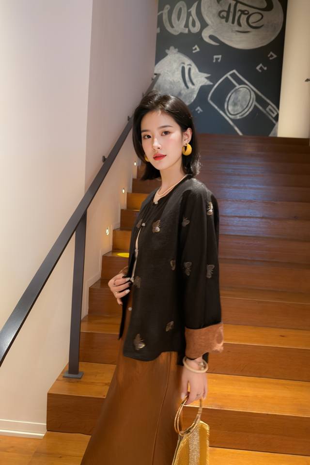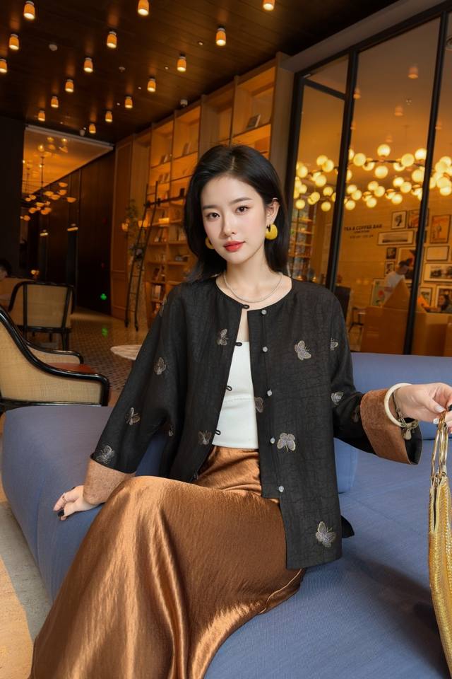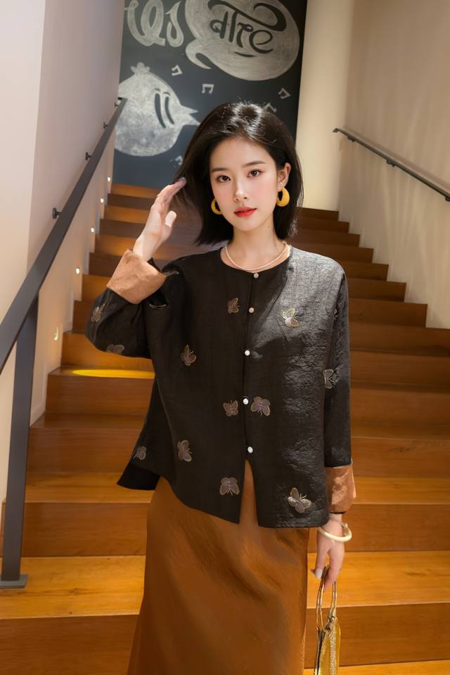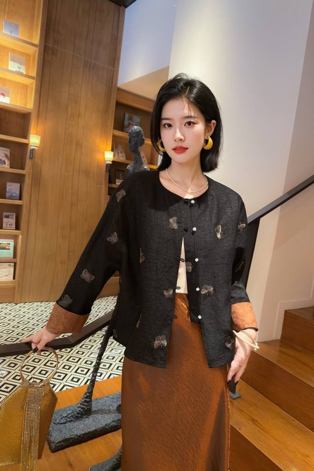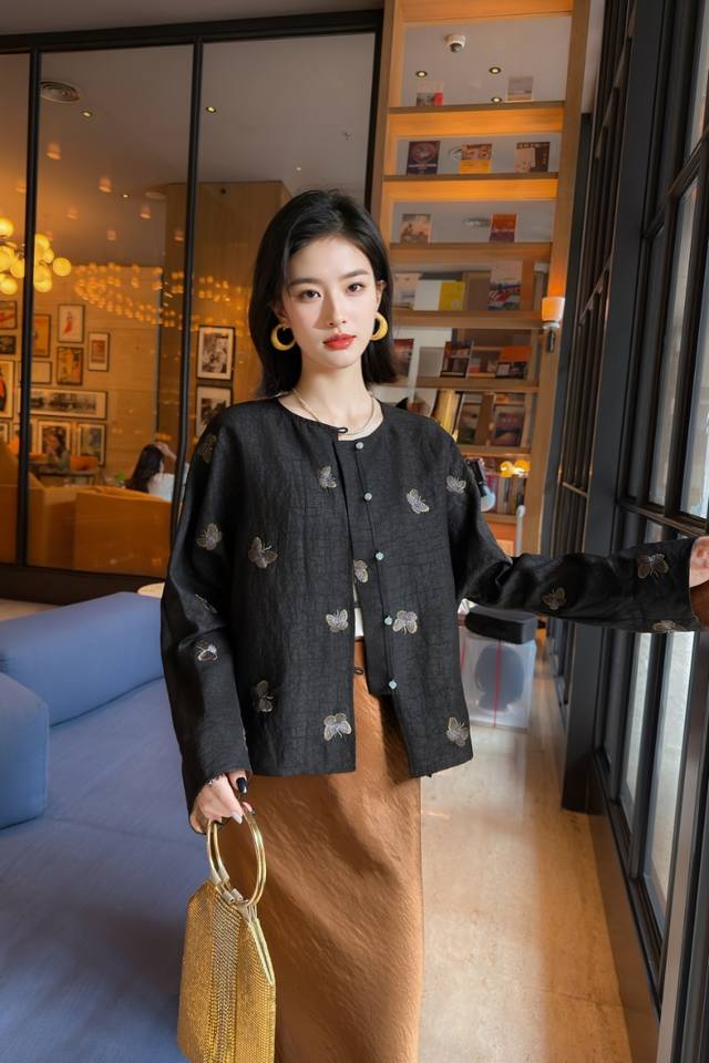Hot sale, 100% silk shantung silk embroidered single-layer jacket S-Xl.