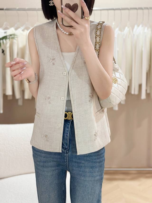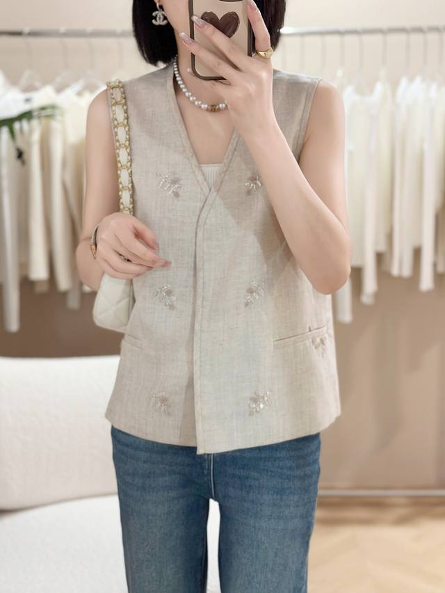Hot sale Heavy sequin embroidery classic all-match V-neck slim high-end linen ve