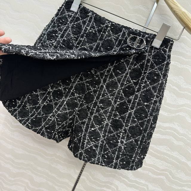 Hot sale, original quality recommended! Miss D 25's new early fall collection, the classic Princess Diana rattan check shorts and skirt, a must-have for every woman, perfect with a designer culottes. Custom-made, three-dimensional woven tweed fabric creates a three-dimensional, wide-open look! The classic A-line silhouette creates a slimming and tall look, while the versatile black and white palette creates a sophisticated French elegance. The quality of the workmanship is evident in the details! Available in sizes 36, 38, and 40. Size 36 : Waist 64, Hips 90, Length 40.