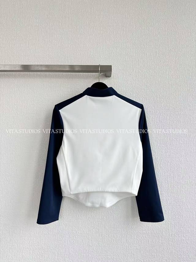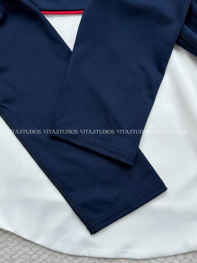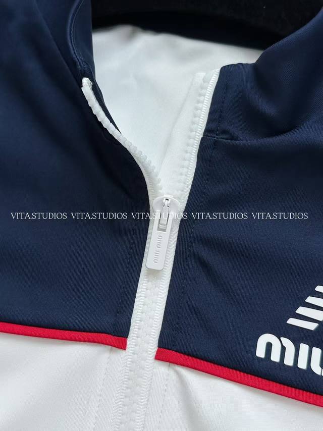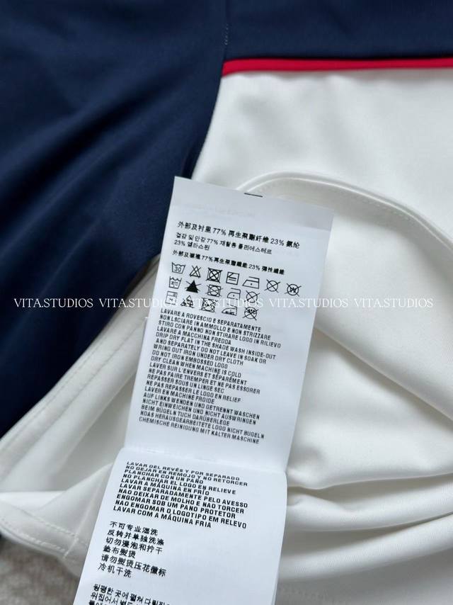 The color blocking features navy blue and white, with navy blue being calm and sophisticated, and white being clean and refreshing. The red lines in the middle add visual depth and vibrancy