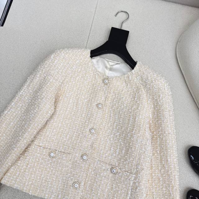 Hot Selling Item: C-brand 25Ss Autumn/Winter Newest Elegant Set - Round Neck Short Knitted Jacket + Bodycon Skirt. Anyone wearing this will exude the elegant and noble air of a wealthy heiress. Beauty and style go hand in hand; it's a winter wardrobe treasure! Even petite women can easily pull it off. The color-blocking design is just right, creating a cohesive look. Available now in sizes S, M, and L. Size S: Bust 94cm, Length 50cm, Waist 68cm, Hips 92cm, Skirt Length 38cm. (DDD)