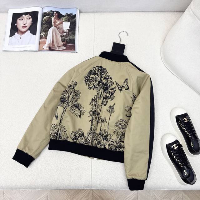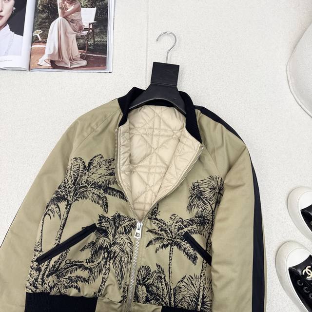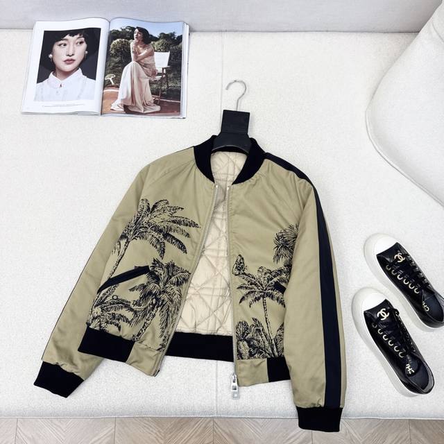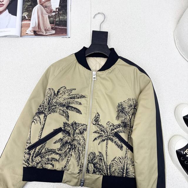 Hot Selling Item Recommendation Cd 25Ss Autumn/Winter Newest Ribbed Patchwork Coconut Tree Print Flight Jacket Cotton Coat This season's must-have hot selling series is so beautiful~ Classic silhouette, short design, casual and handsome, retro and youthful, rattan quilted lining, full of details, all in one color, available now in S, M, L. Size S: Drop shoulder, chest 102, length 50, manual measurement may have error. DDD