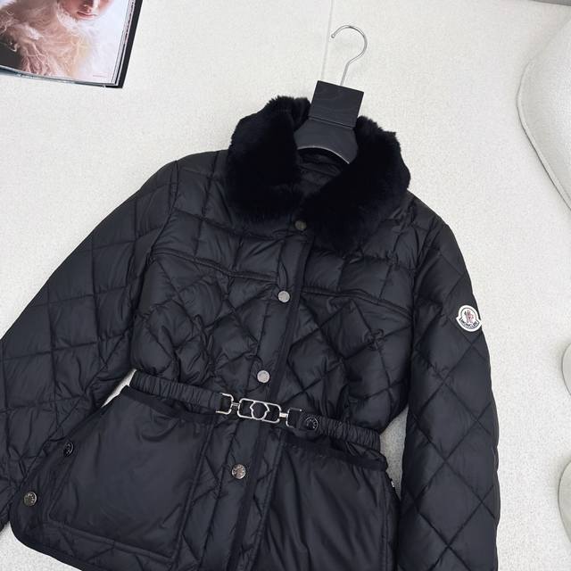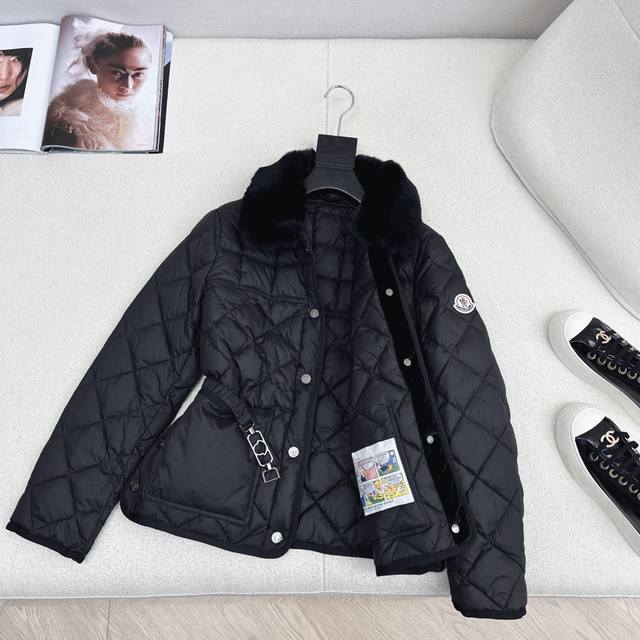Hot Selling Item Recommendation: Mc 25Ss Autumn/Winter Newest Down Jacket with Removable Rabbit Fur Collar. Warm and stylish, this H-line cut features an elastic waistband for a flattering look. Simple, elegant, and warm, filled with white duck down for a lightweight and fluffy feel. Available in two colors. Sizes S, M, and L. S size: Shoulder width 42cm, Chest 102cm, Length 59cm. (DDD)