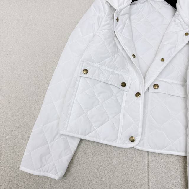 Hot Selling Item Recommendation: Mc 25Ss Autumn/Winter's First Diamond Quilted Short Cotton Jacket, Elegant Lapel, Double Pockets, Short Design, Youthful and Girlish Style. Imported machine-pressed plaid process, three-dimensional tailoring, classic cut, perfect for layering in autumn and winter. A must-have for warmth. British style, versatile and stylish. Lightweight and warm fabric. Available in three colors. Sizes S, M, and L. S: Shoulder width 40cm, Chest 98cm, Length 51cm. Manual measurement may have errors.