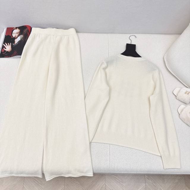 Hot Selling Item Recommendation pd 25Ss Autumn/Winter Newest Lazy Style Wool Set: Logo Embroidered Cardigan + Straight Leg Pants. 100% Thickened Fine Wool Yarn Fabric. Simple, Stylish, and Lazy Fit. Durable and Warm, Yet Stylish! The Most Practical and Versatile Autumn/Winter Base Layer, Layering, and Everyday High-End! Super Elastic, Suitable for All Body Types. Sold as a Set in Three Colors (Sizes S, M, L). Size S: Shoulder Width 39cm, Bust 102cm, Length 61cm, Waist 66cm, Pants Length 100cm. Manual measurement may have errors. DDD