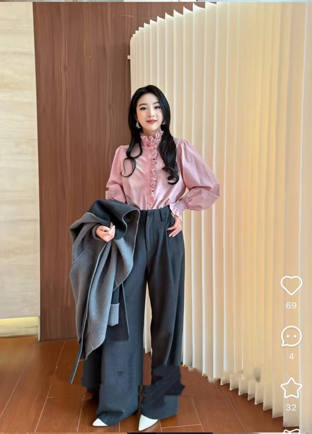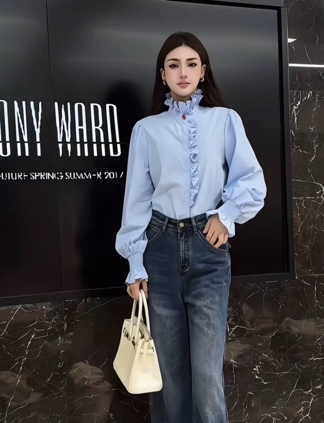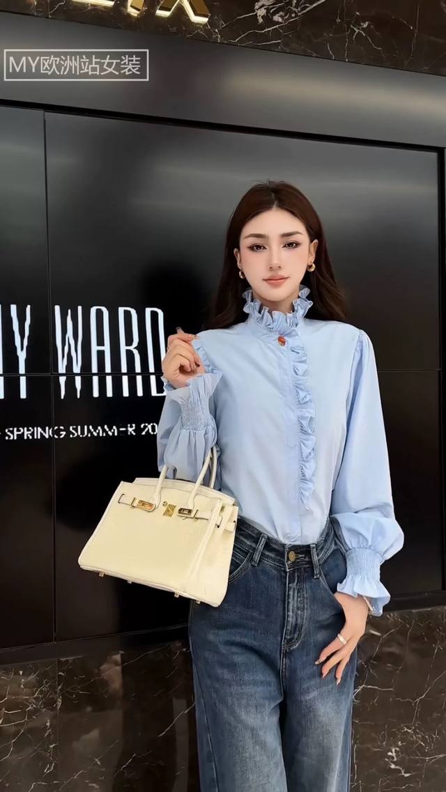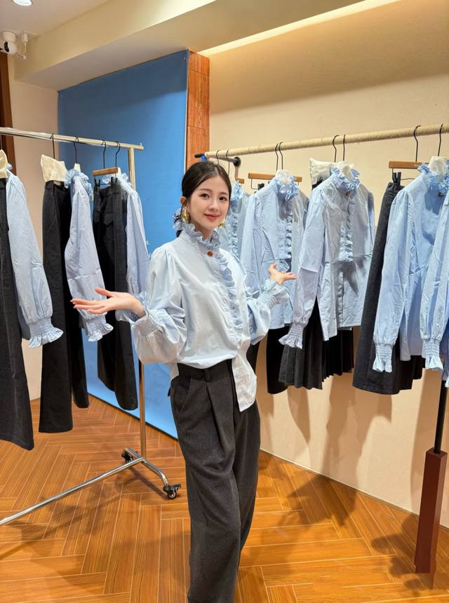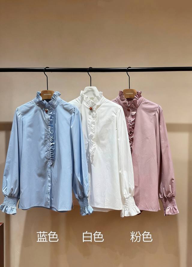 Hot Selling New Arrival! A sophisticated and elegant stand-up collar with ruffled trim from the neckline to the placket, and heavily gathered cuffs. The overall look features romantic and chic soft pleats. Wear it alone for a layered and three-dimensional effect; when layered, the exposed edges create a focal point. Available in three colors: Smlxl DDD