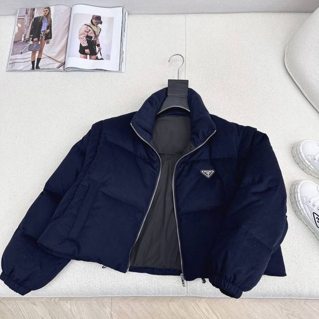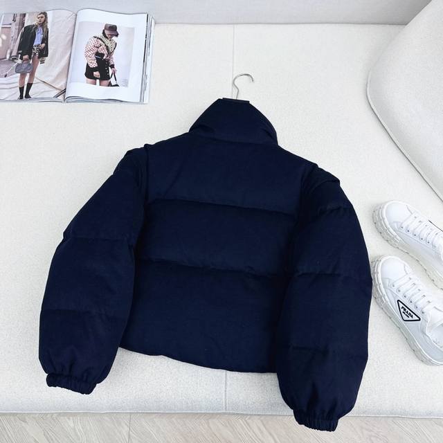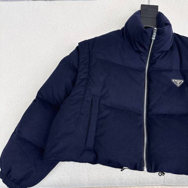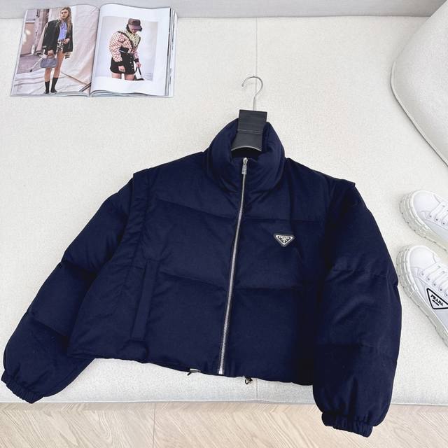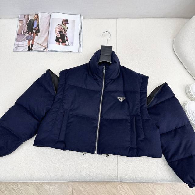 Hot Selling Recommendation pd 25Ss Autumn/Winter Newest Detachable Sleeve Down Puffer Jacket, Flattering for All Heights, 3D Cut, H-Line, Stylish and Cool, A Must-Have Street Style Layering Warm Item for Autumn/Winter, Classic Logo Triangle Decoration, Standard 90% White Duck Down Filling, Original Hardware Accessories, Three Colors Available Now, Sizes S, M, L. Size S: Shoulder Width 53cm, Chest 128cm, Length 48cm. (DDD)