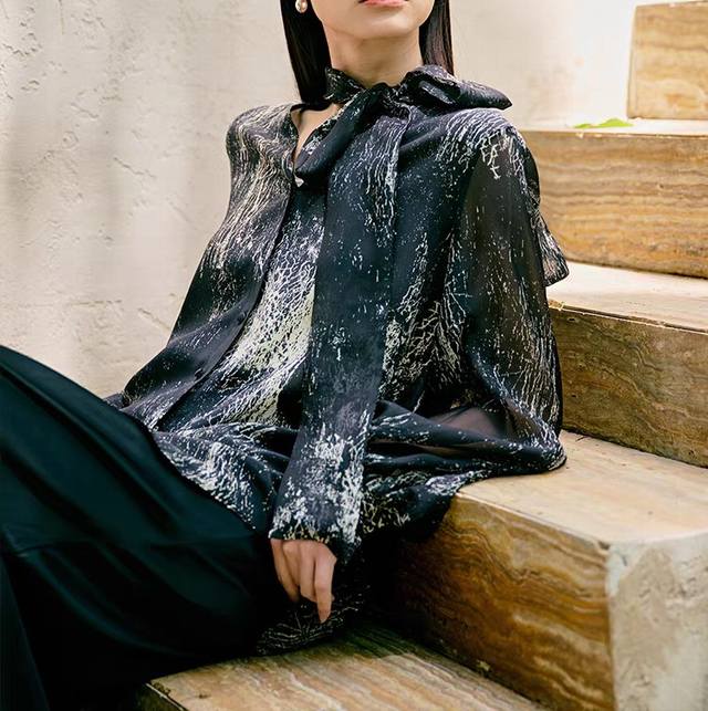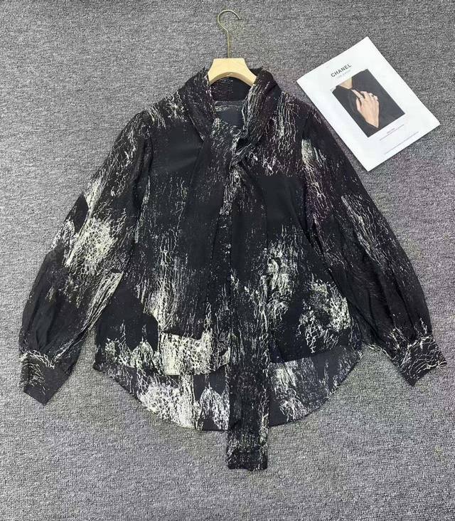 Hot spot Silk gradient print ribbon top Spot S-Xl