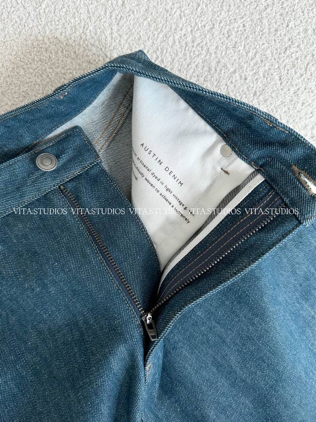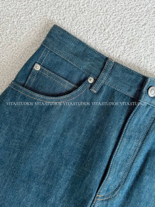 denim midi skirt. Made with 100% imported Japanese denim cotton, each fiber imbued with the sunshine and local customs of its origin, woven into the purest denim soul. Untouched by impurities, only the cotton's true nature breathes like a second skin. Soft yet crisp, light yet defined. The A-line silhouette radiates naturally from the waist like a blooming bluebell. Two sculpted patch pockets on the back waist cleverly enhance the curves, while the curved front slip pockets offer a surprisingly gentle detail. The seam running through the front and back, like a time scale, enhances the sharpness of every angle.