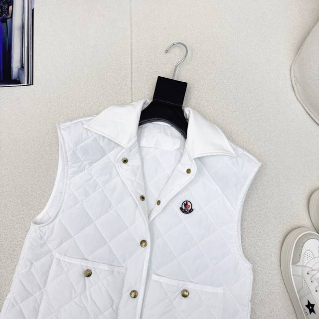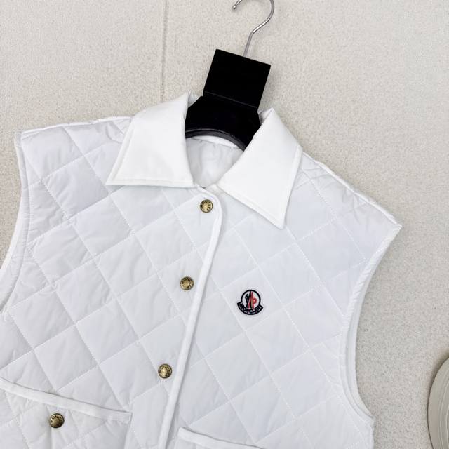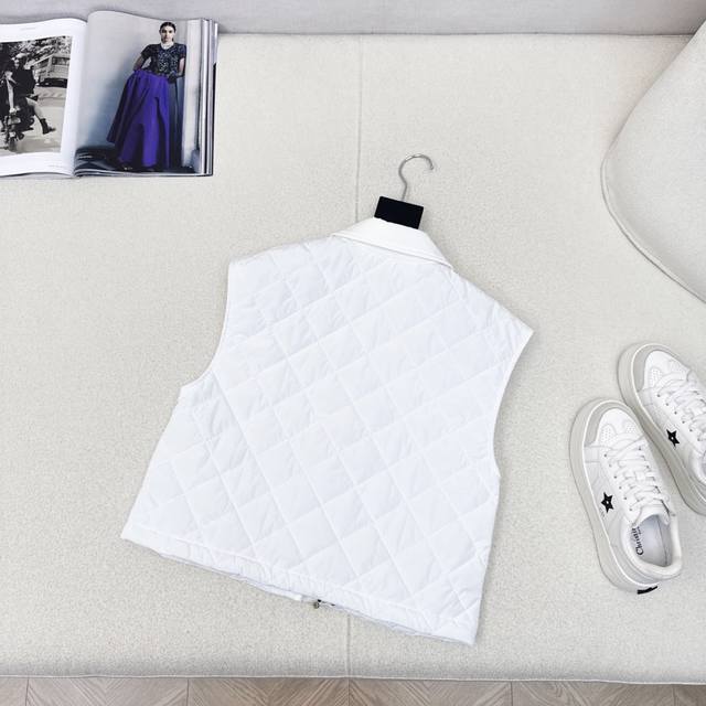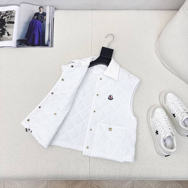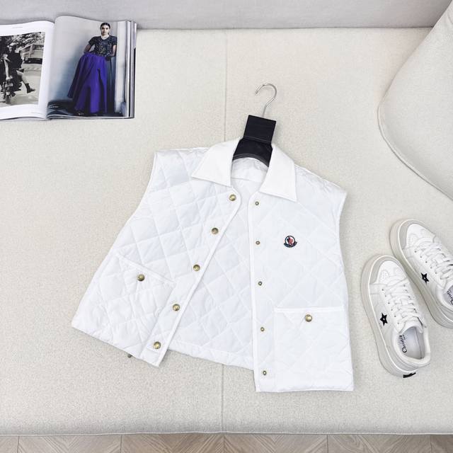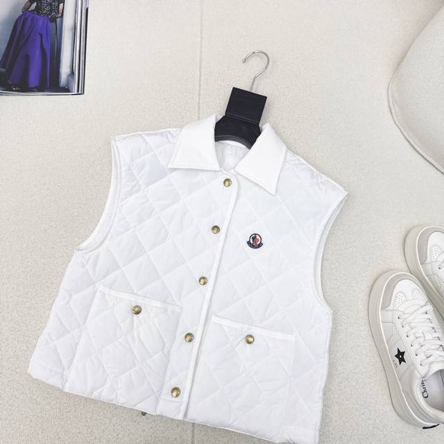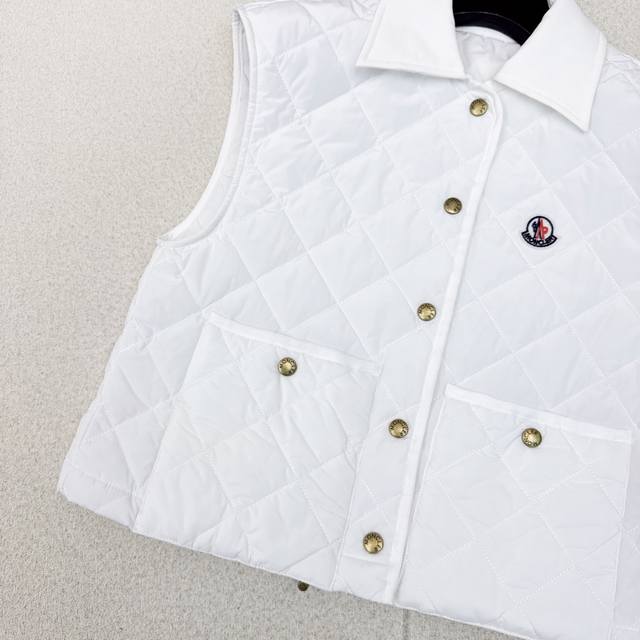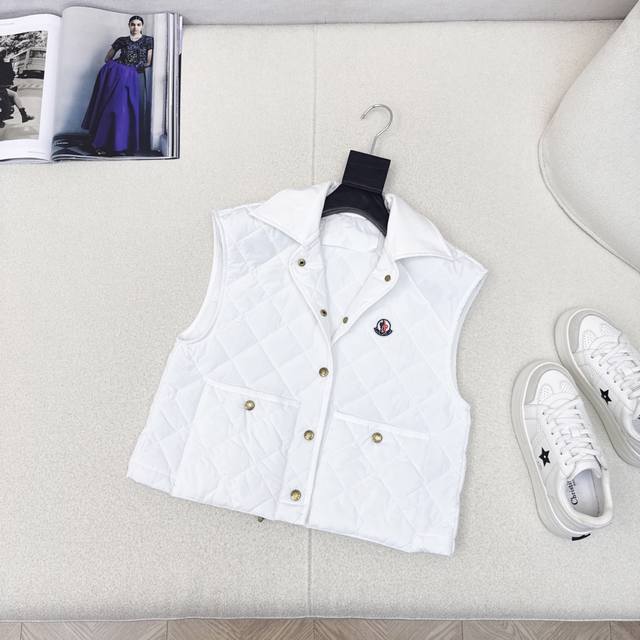 Hot-selling item recommended: Mc 25Ss, a new autumn/winter diamond-quilted padded cropped vest with elegant lapels and double pockets. The short design makes you look youthful and youthful. Imported machine-stitched latticework and a three-dimensional cut create a classic fit for autumn/winter layering. A versatile and stylish British style. Lightweight and warm fabric in three colors. Available now. Size S: Chest 92cm, Length 44cm. Manual measurements may vary.