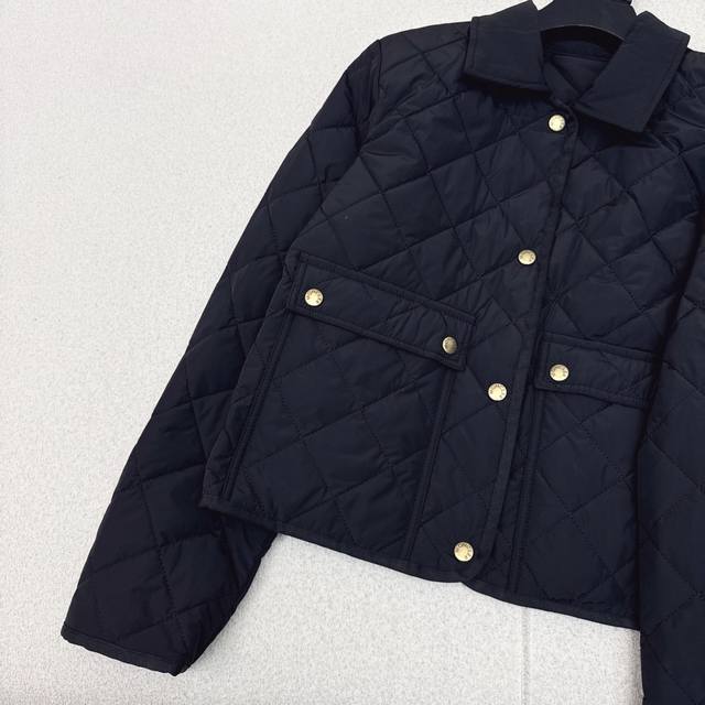 Hot-selling item recommended: Mc 25Ss, the first fall/winter style. This diamond-quilted, padded jacket features a stylish lapel and double pockets. The cropped design makes it youthful and youthful. Imported machine-stitched stitching and 3D tailoring create a classic fit for fall/winter layering. A versatile and stylish British style. Lightweight and warm fabric in three colors. Available now. Size S: Shoulder 40cm, Chest 98cm, Length 51cm. Manual measurements may vary.