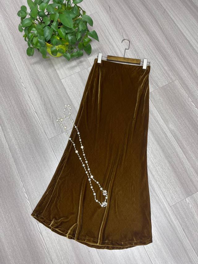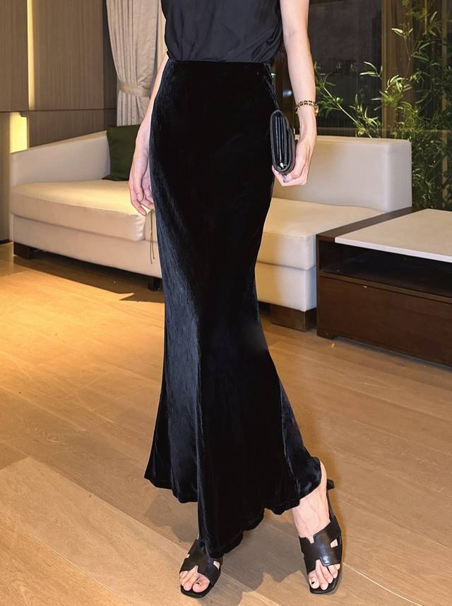 Simple high-end bias-cut slim fit temperament medium-length silk velvet fishtail skirt