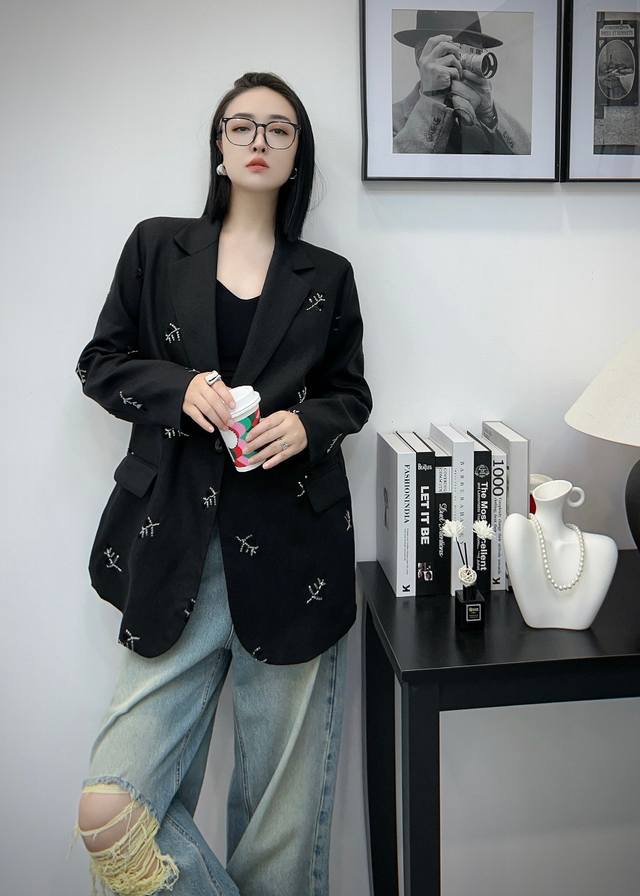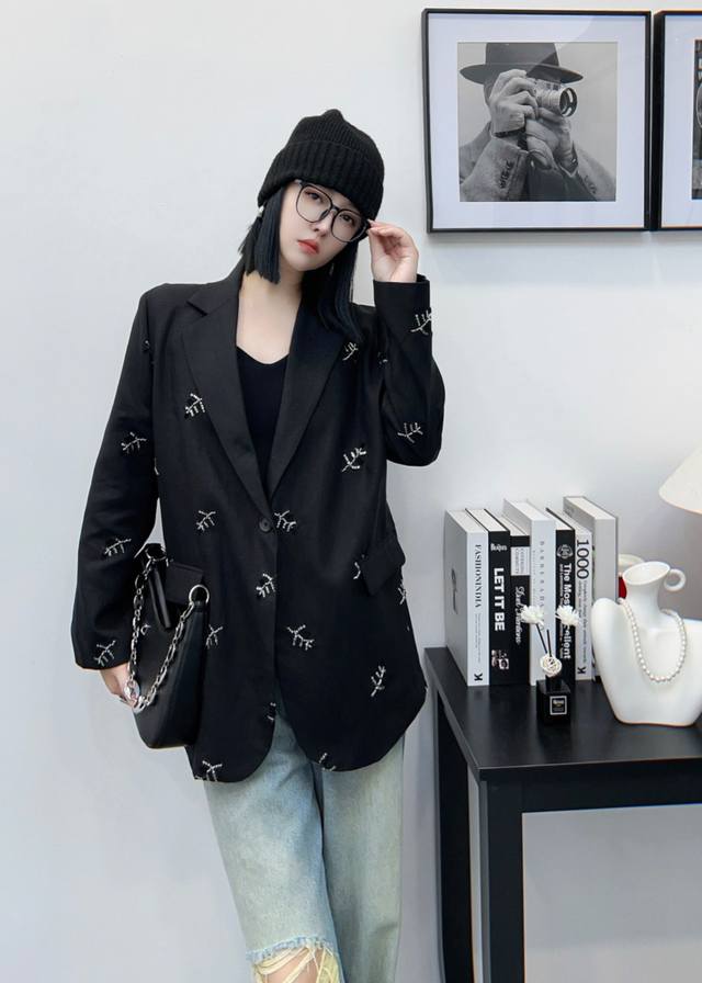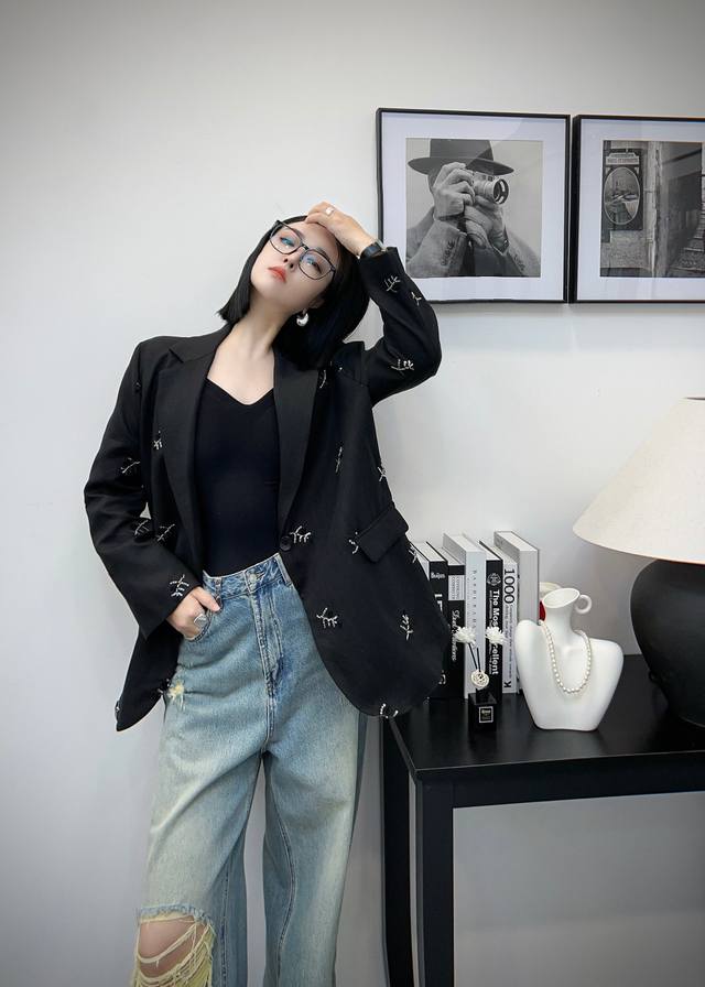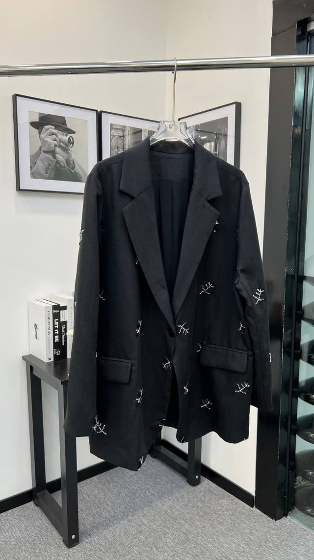 Heavy sequin embroidery stitching notch lapel design high-end linen suit jacket