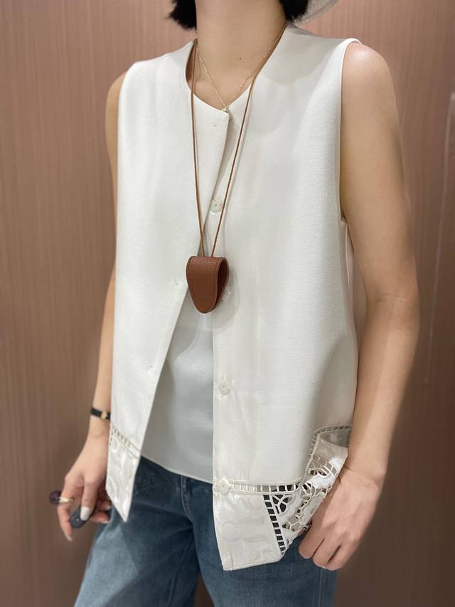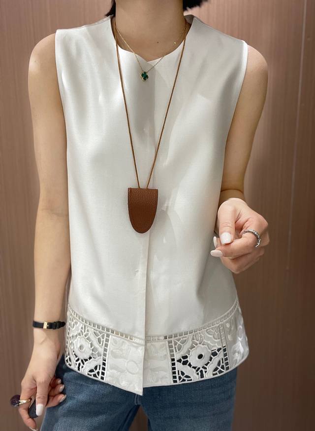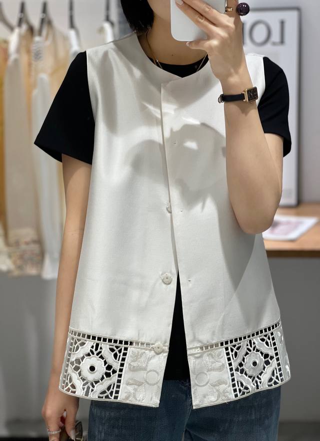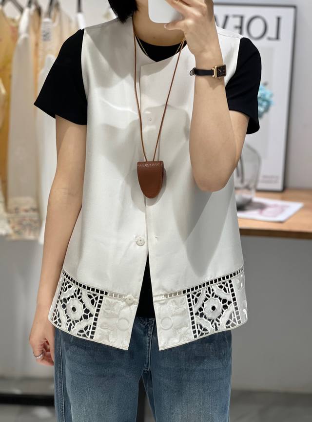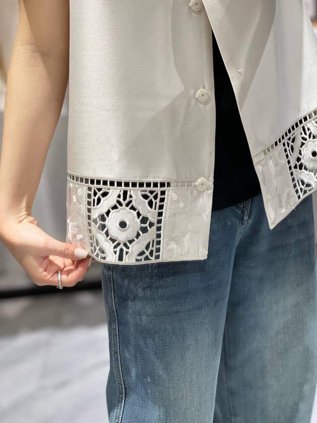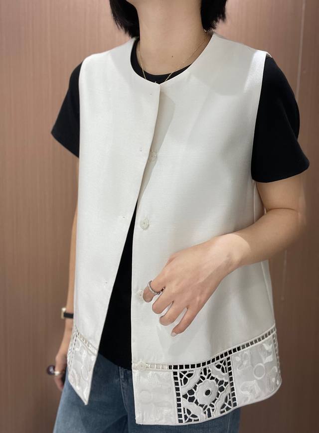 High-quality positioning embroidery hem hollow air quality silk vest
