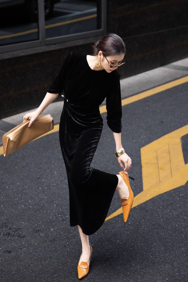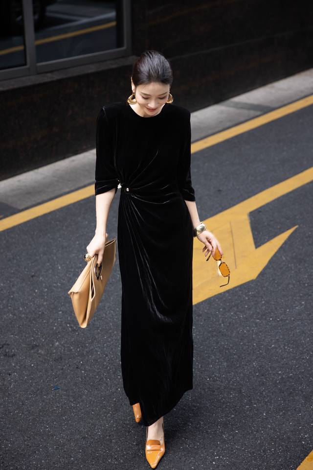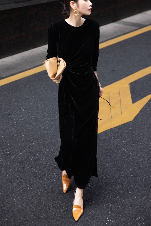 Hot-selling silk velvet dress. Silk velvet is more comfortable and softer than ordinary velvet, with a darker luster and a more upscale feel. It is completely different when worn. The texture is extremely comfortable. The dress is also high-end and classy. Picture, color, and size Smlxlxxl