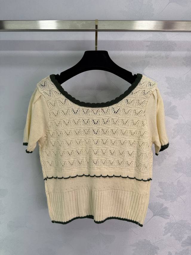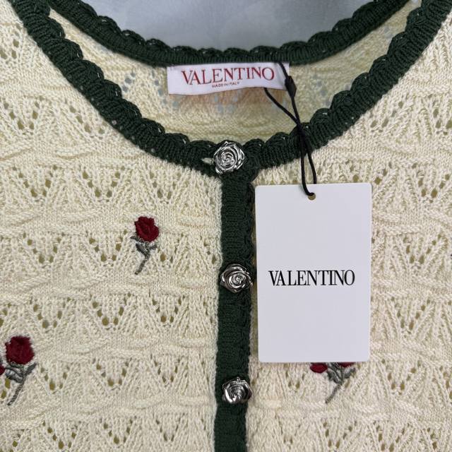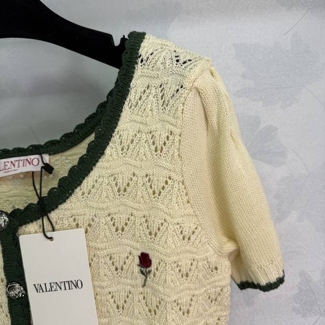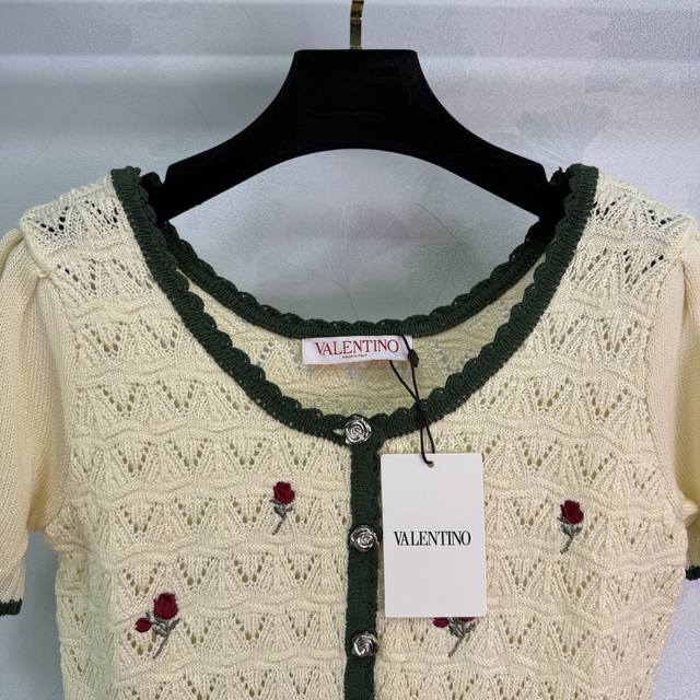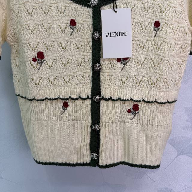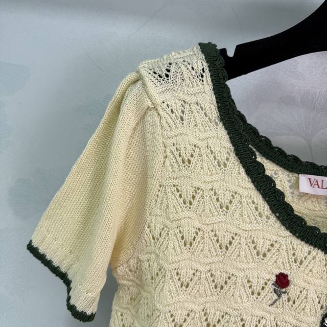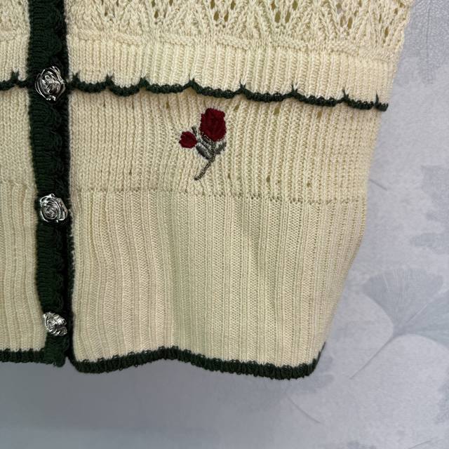Hua Lun*2025 new summer knitted cardigan with exquisite rose embroidery on the chest, black contrasting edges, collar and cuffs in the same color, hollow lace texture is gentle and elegant! 1 color 3 sizes Sml T226B.