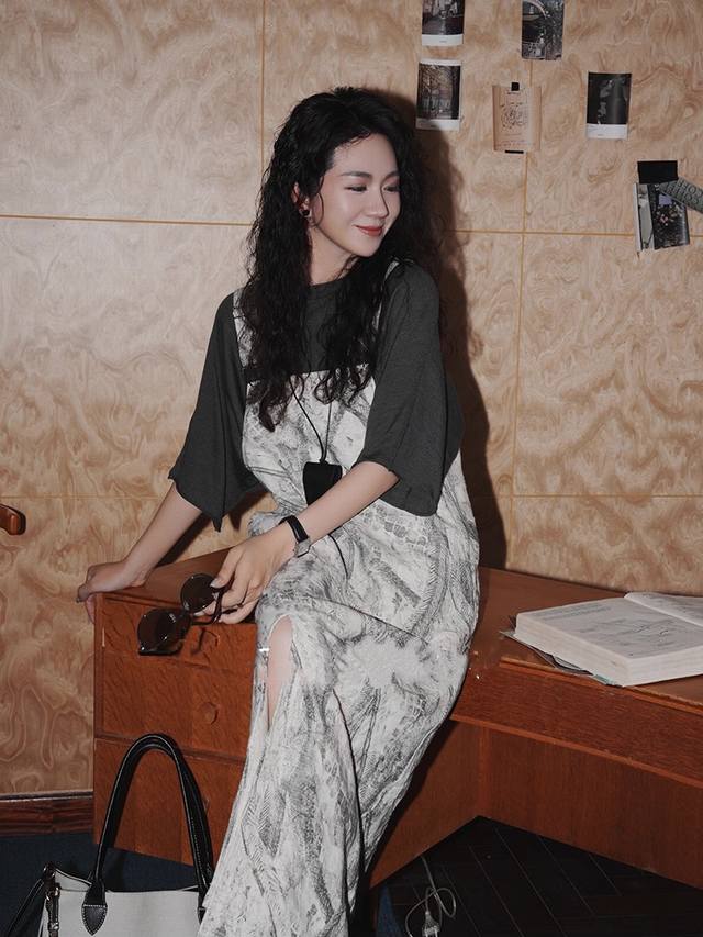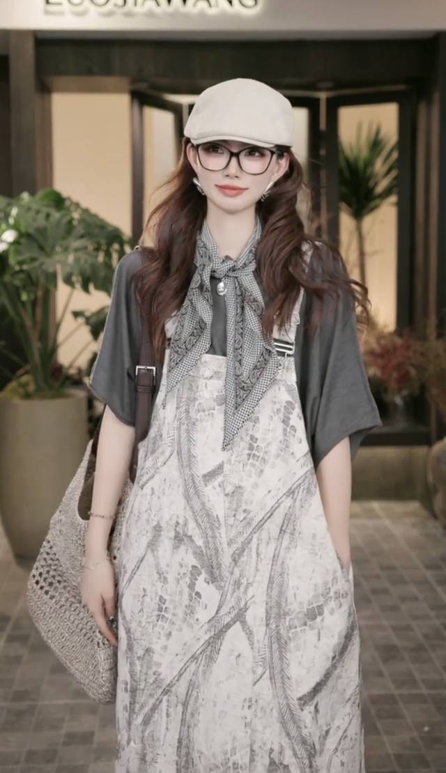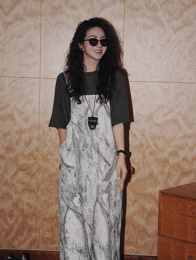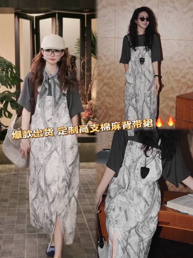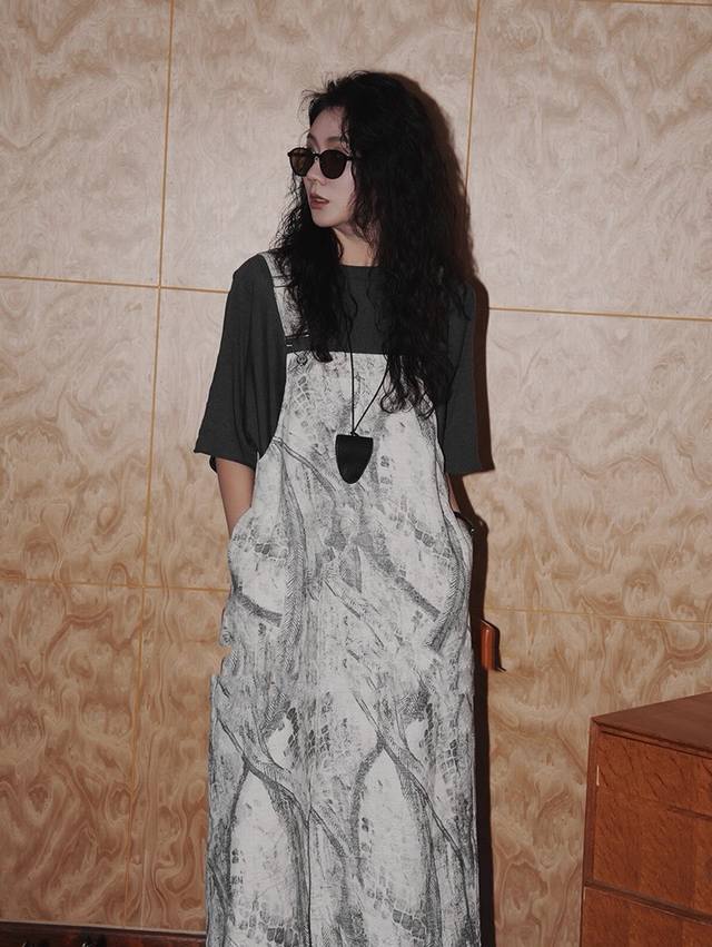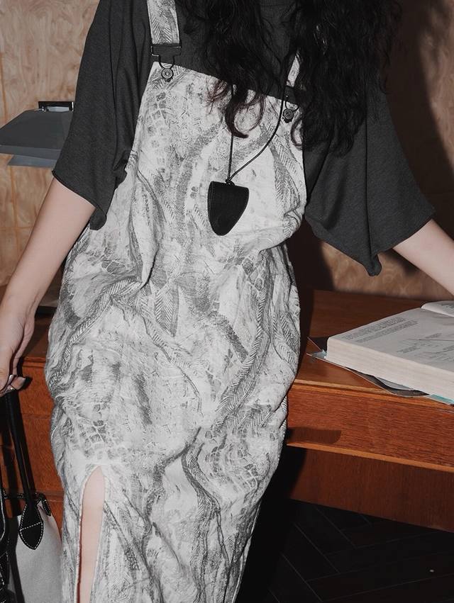 Loose straight version hides meat and makes you look thin, light gray background with ink lines, adjustable straps, paired with a belt in the same color to make you look more lazy, breathable fabric is comfortable Smlxl