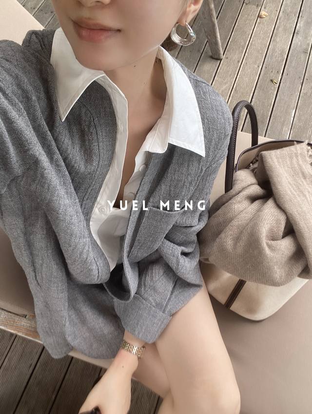 Intellectual advanced high-intelligence commuting fake two-piece wool shirt The classic lapel design is simple and generous, which can well modify the neck line and show a capable and neat temperament. The front piece is a fake two-piece splicing design, which is chic and advanced and forms a unique visual focus. The loose version is very friendly to all body shapes and is comfortable to wear. It can be worn for daily work and outings. Smlxl