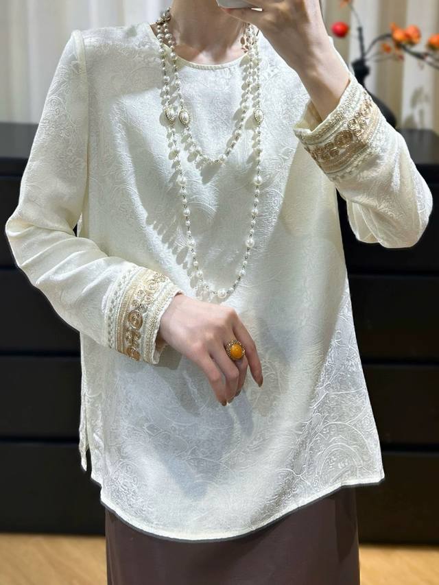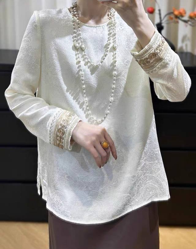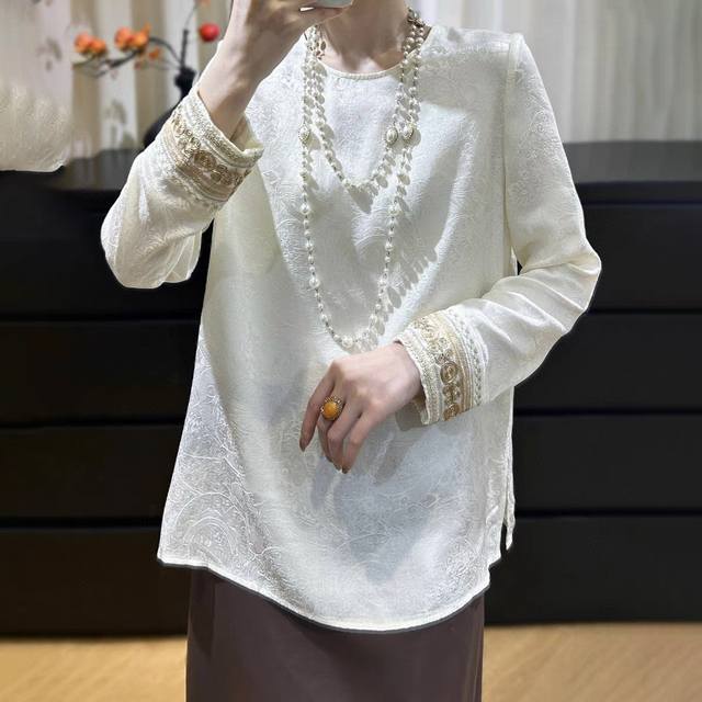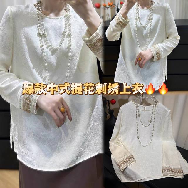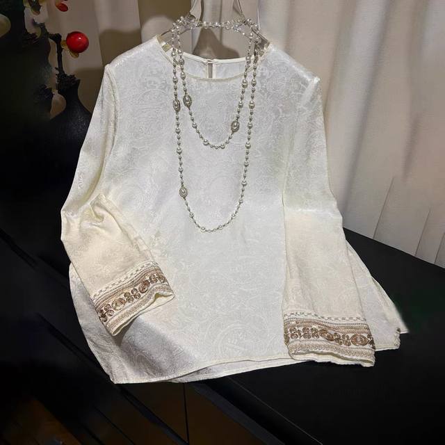 Invincible hot-selling exquisite light luxury new Chinese jacquard embroidered top is very good to wear alone or as an inner layer. The cuffs are exquisitely embroidered. The loose version is not picky. White is suitable for any clothes. Smlxl
