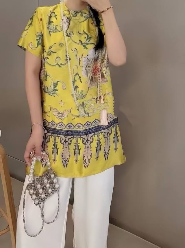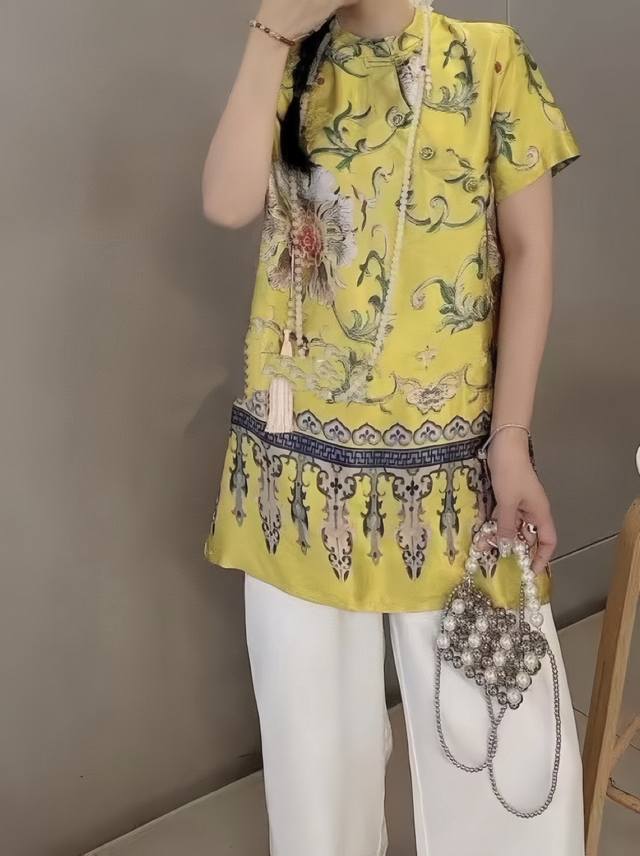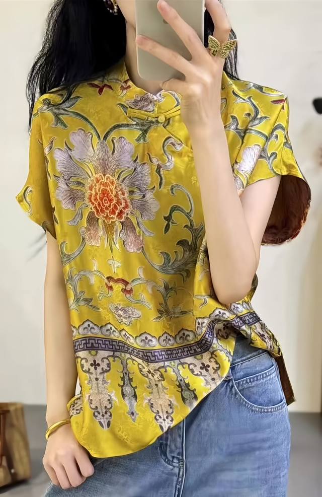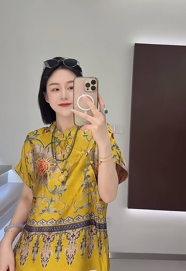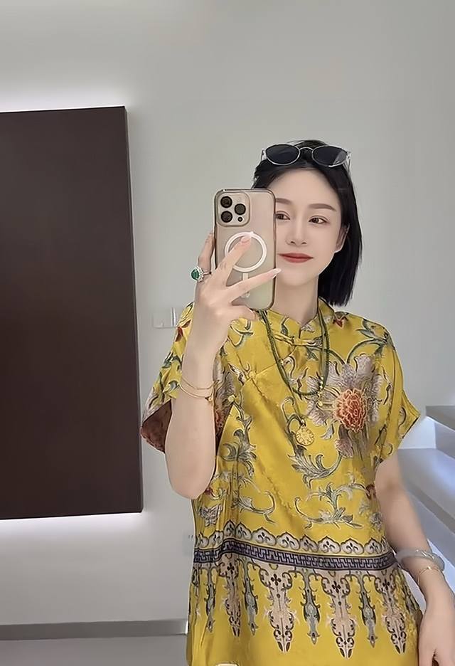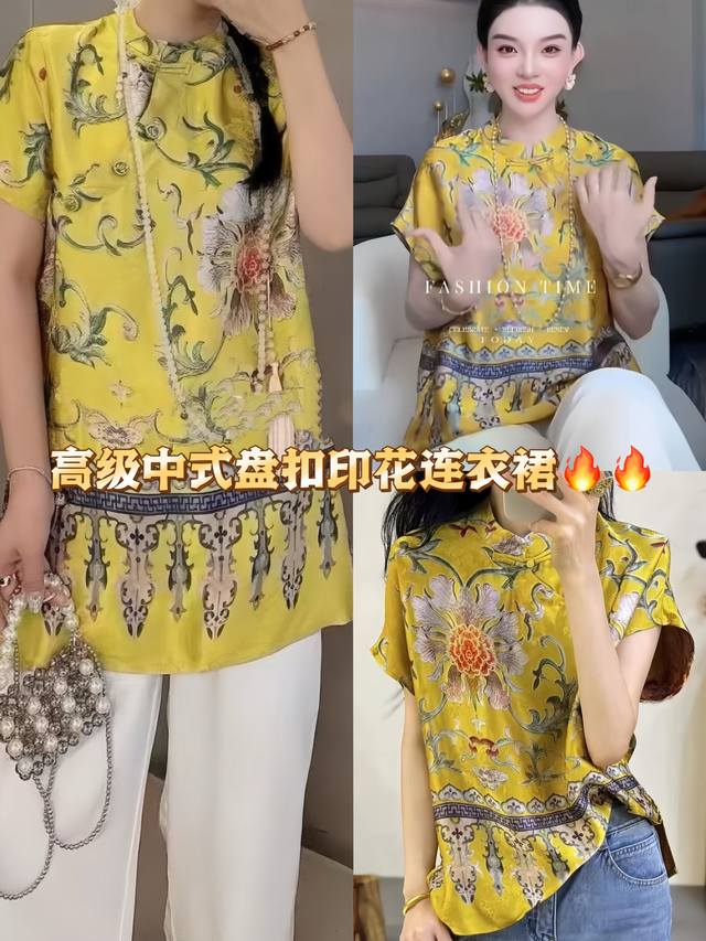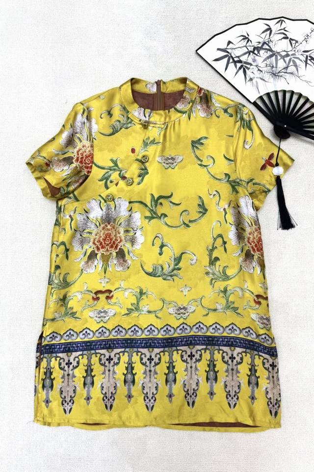 Invincible hot-selling high-end fashion button-printed Chinese mid-length skirt with traditional floral patterns on the body and exquisite trims on the hem, combining classical charm with a fashionable sense, showing oriental aesthetics Smlxl