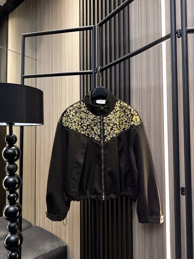 Miumi*Heavy Embroidery Padded Jacket This padded bomber jacket is made from gaba