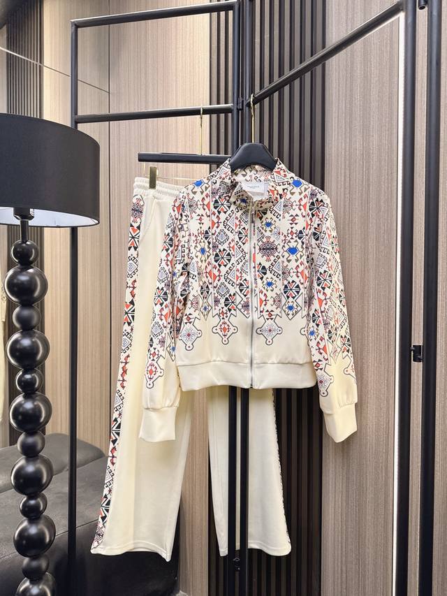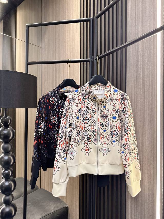 Isabel's 2025 Fall/Winter new print casual stand-up collar long-sleeved suit, soft and skin-friendly fabric provides all-day comfort! The simple stand-up collar design modifies the neckline, and the loose version accommodates all body shapes. Retro prints embellish the body of the suit, and pair it with the same series of bottoms to easily wear a lazy and fashionable look ~ Two colors Sml