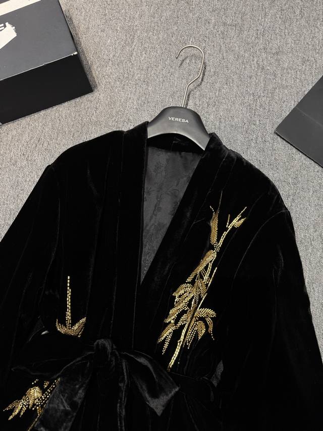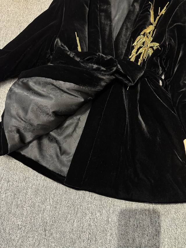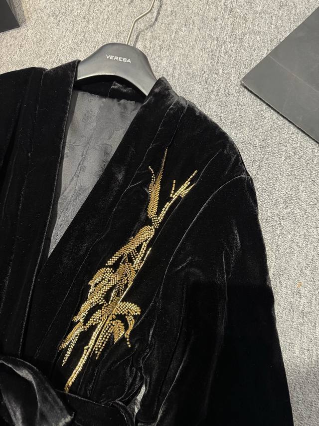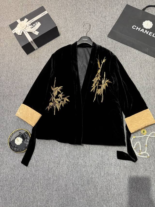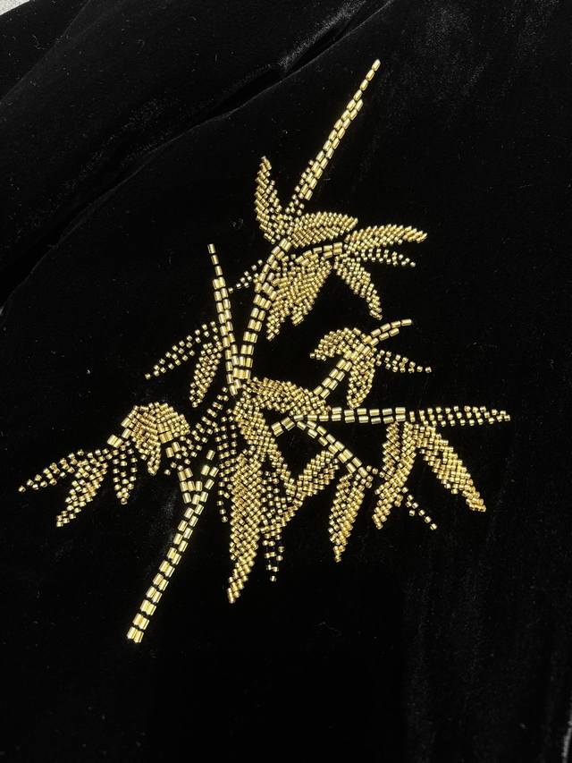 Chinese-style robe-style quilted jacket! Adorned with gold beads and bamboo embroidery, warm cotton base, and bamboo leaf decorations, wear elegance and a high-end feel. Smlxl