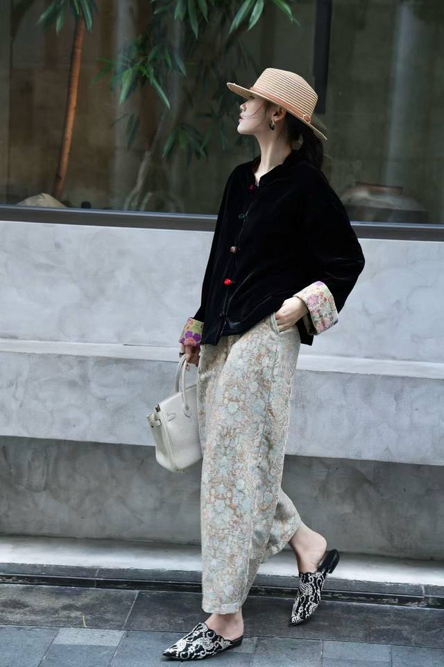 160 pants popular fashion versatile high-quality silk velvet jacket shipped a set of