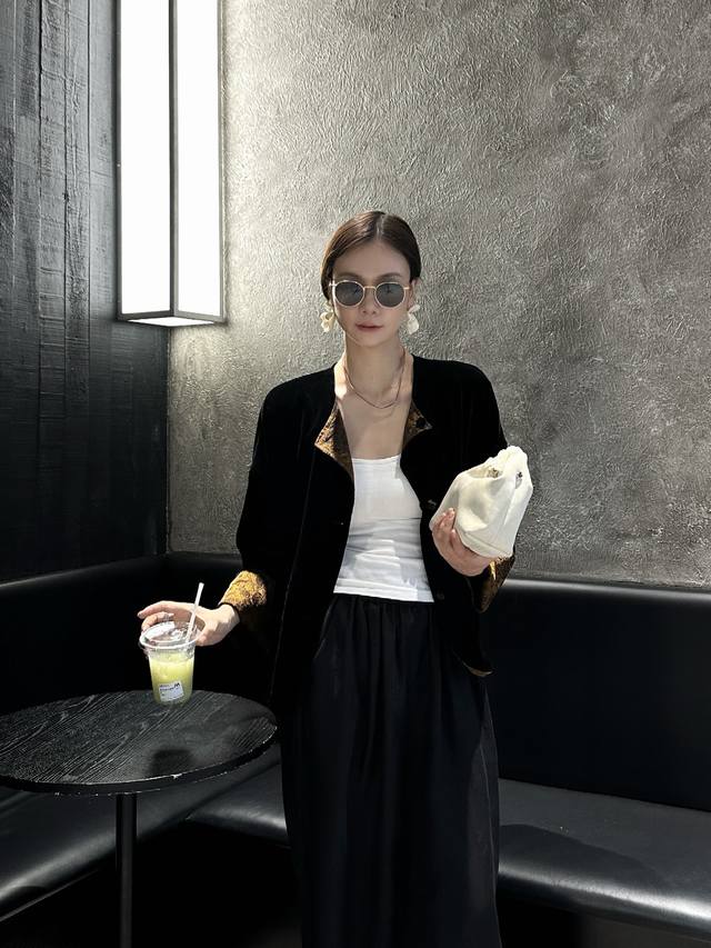 The highest version on the market, a double-sided, double-wear hit, with the highest quality. Made of 100% high-quality active black silk velvet, spliced with gilded rayon jacquard fabric, the texture is so high-end that it is amazing. What's more, it can be worn on both sides, one piece is equivalent to two pieces, and it is both practical and fashionable.
