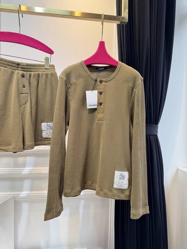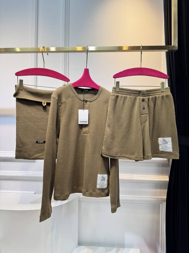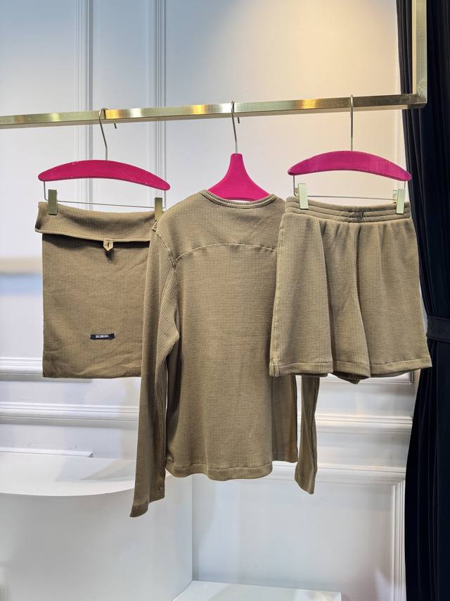 jacquemu*Waffle knit suit, long-sleeved shorts packaging bag